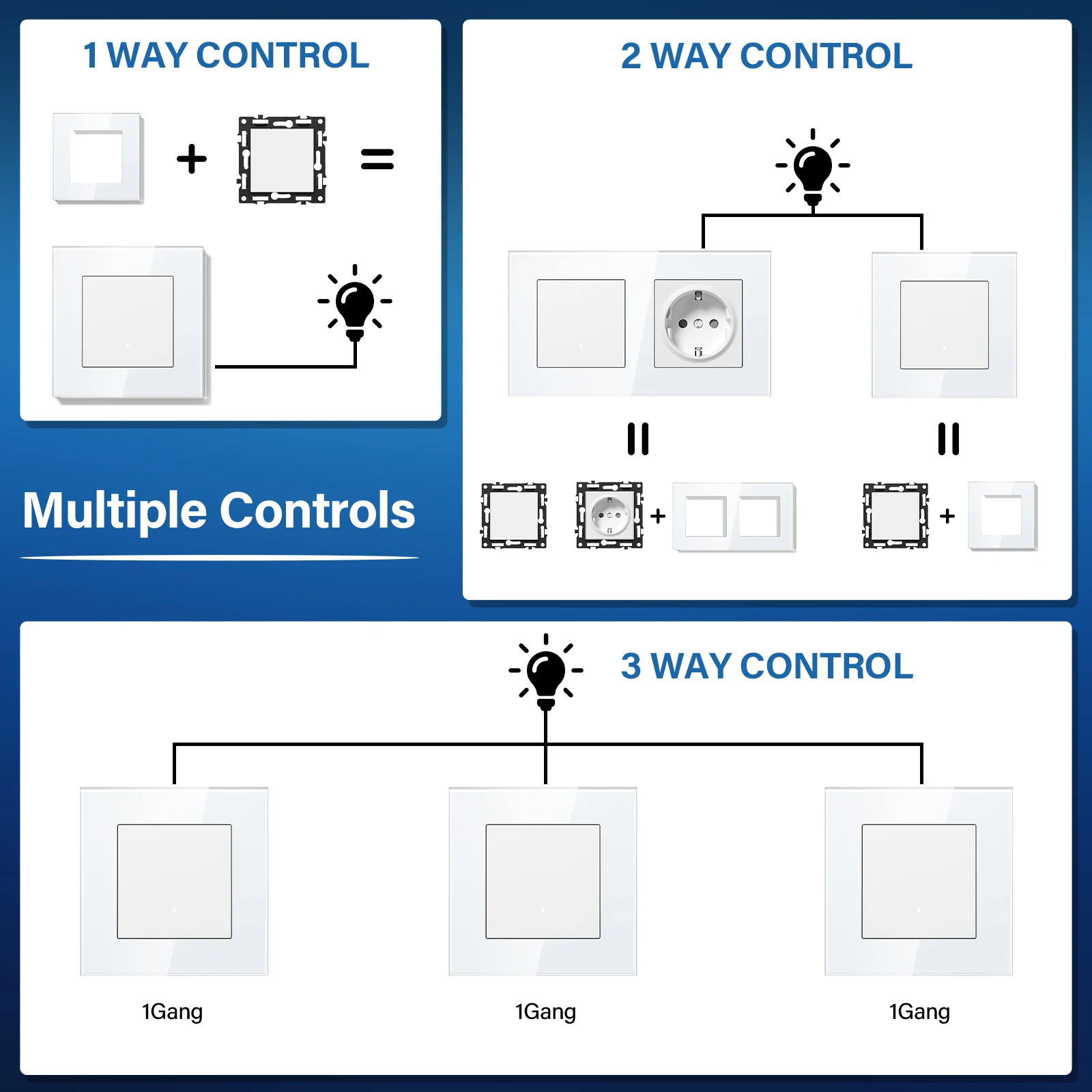 Multi-control association: the same light can be controlled from 1/2/3/4 different places with same type of switches.