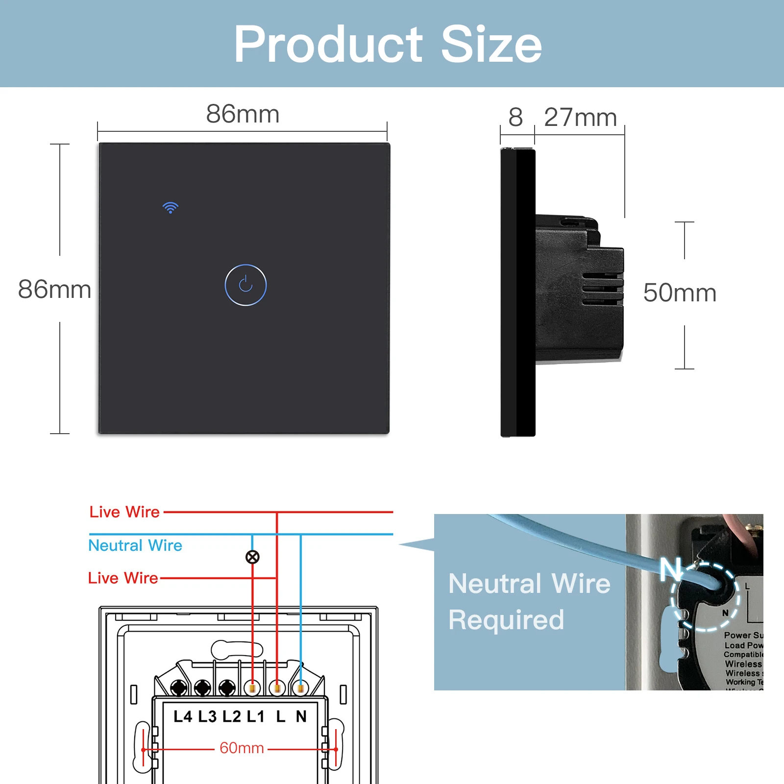 The Smart Touch Switch is Compatible With LED Light Bulbs, Incandescent, Halogen, Fluorescent, and Compact Fluorescent Bulbs. The Wifi Smart Switch(required A Neutral Wire To Install).