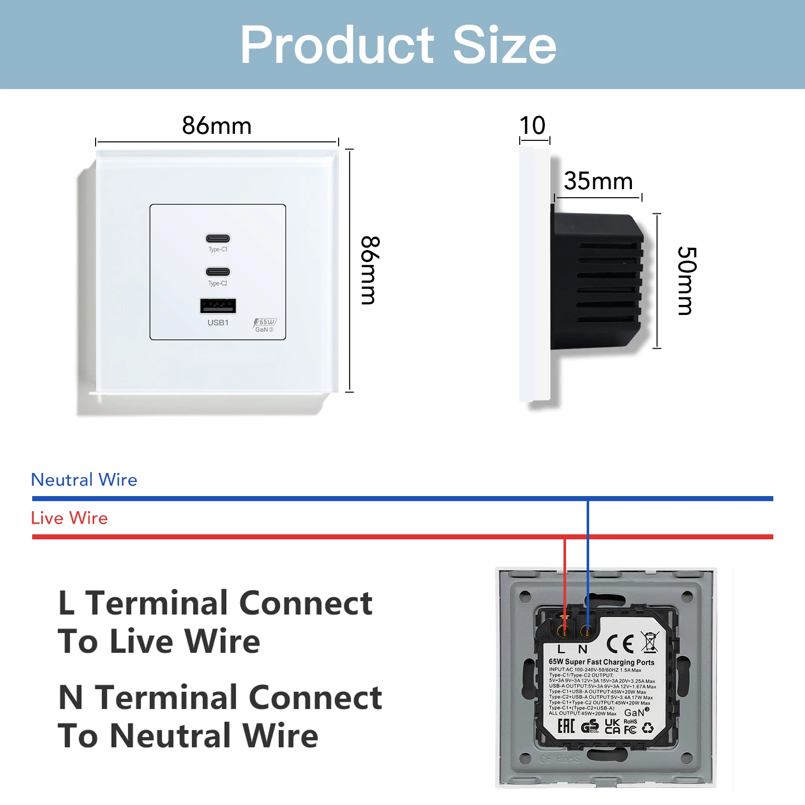BSEED 65W USB C Wall Sockets Double Type-c USB Fast Charging Power Ports For Computer Phone With EU Socket Plastic Frame 157mm