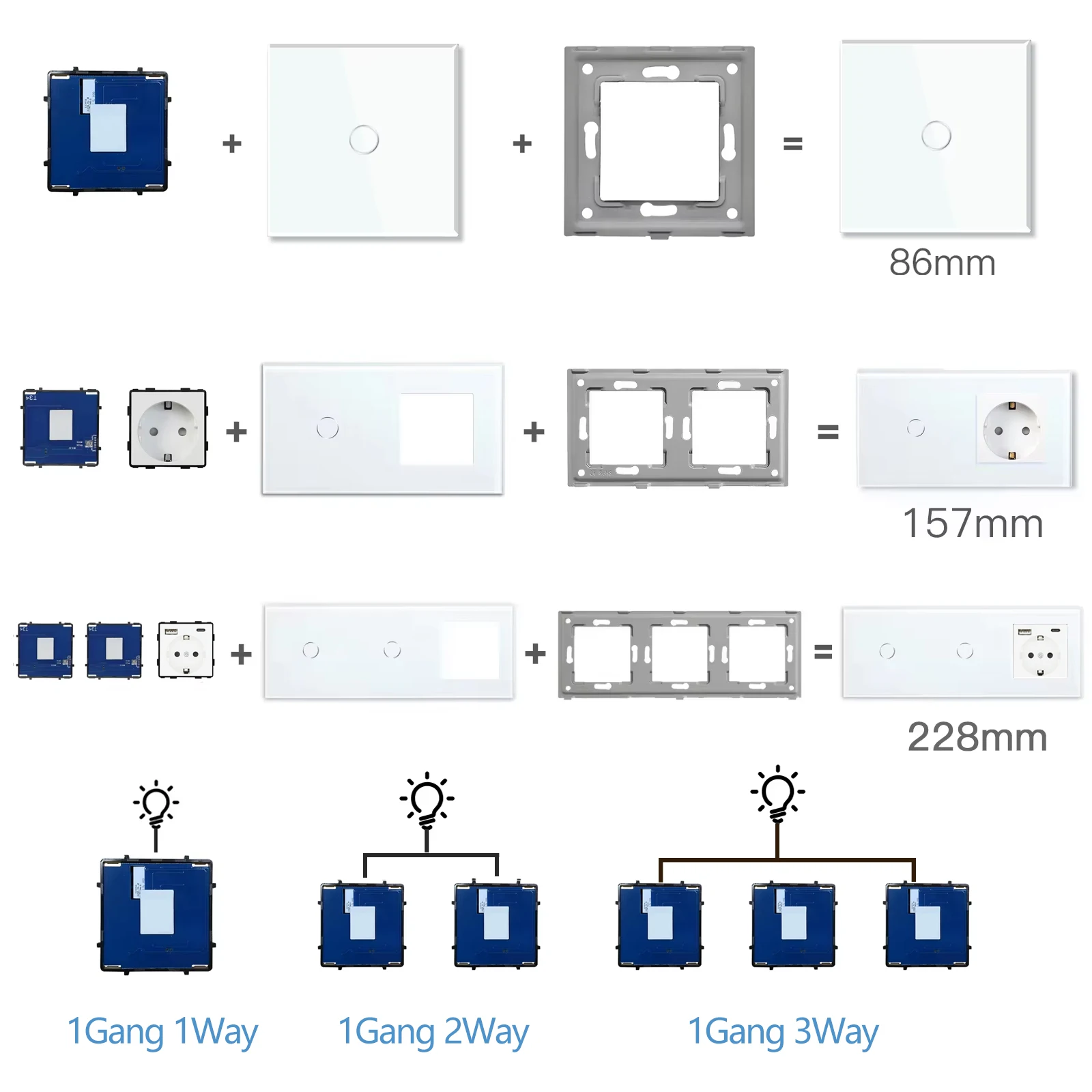 A:The blue backlight will be on when the wiring is successful. Allowing you to notice Our touch switch clearly in the dark.and the backlight can be cancelled in the App.