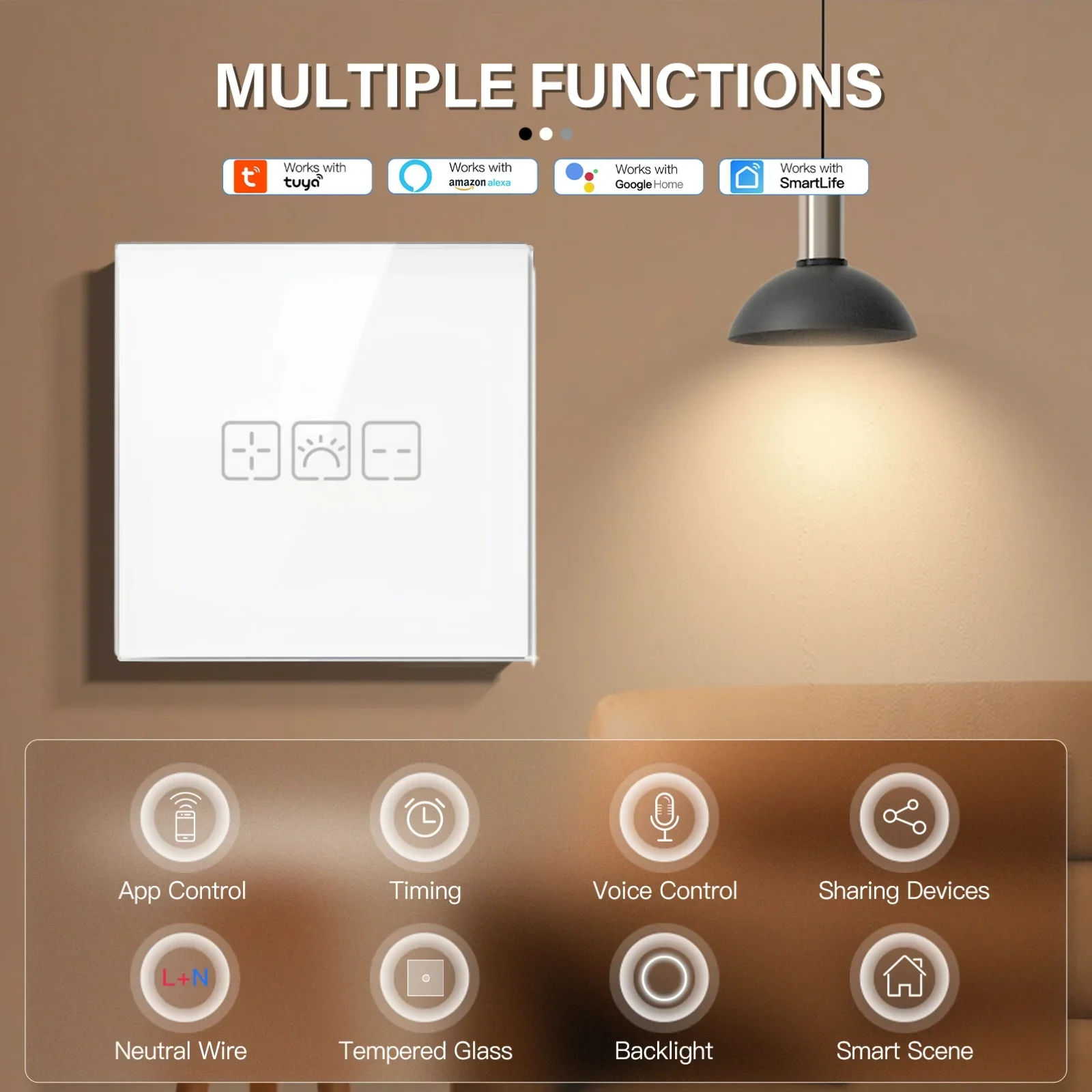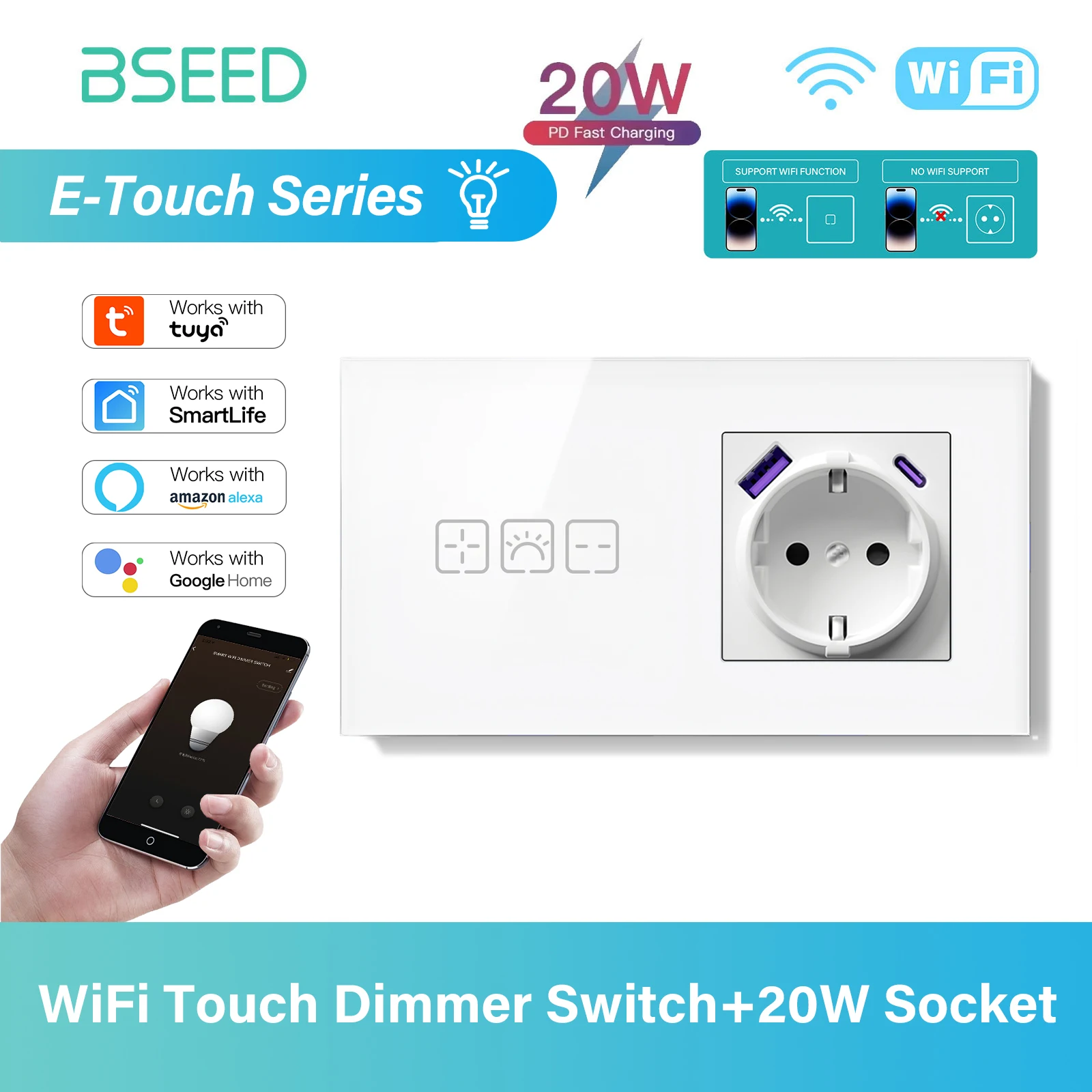 BSEED Wifi Dimmer Wall Light Switch 1/2/3Gang Smart Touch Switch Function Base Glass Front Panel DIY Parts Free Combination