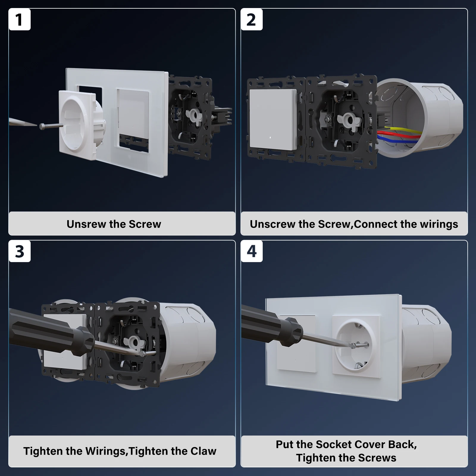BSEED Wifi Wall Smart Switches 1/2/3/4Gang Mechanical Click Buttons Tuya Smart Life App With EU Power Sockets USB Glass Frames