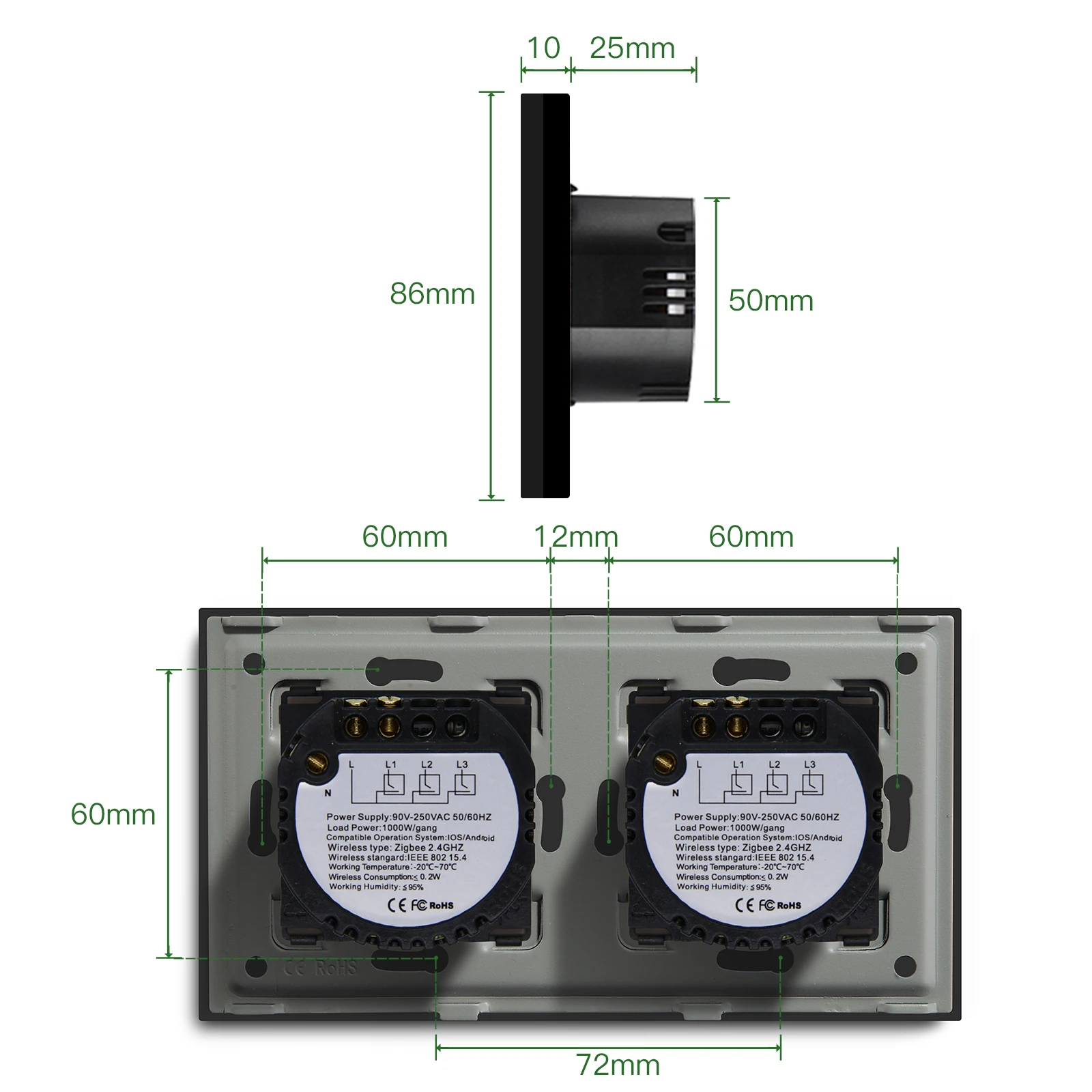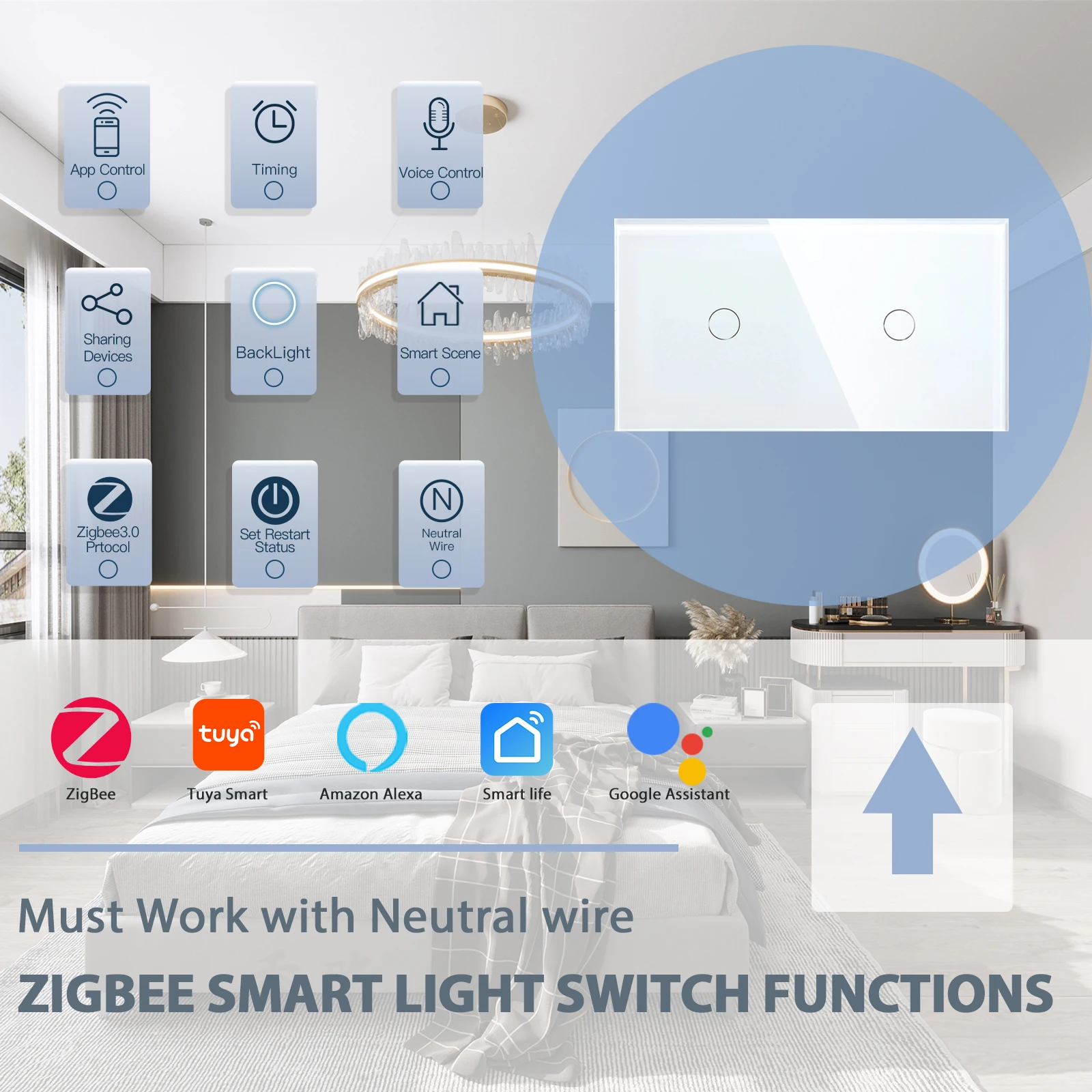 BSEED Zigbee Smart Switch Double 1/2/3Gang 1/2/3Way Wireless Light Switch Support Tuya Google Home App Alexa Voice Control