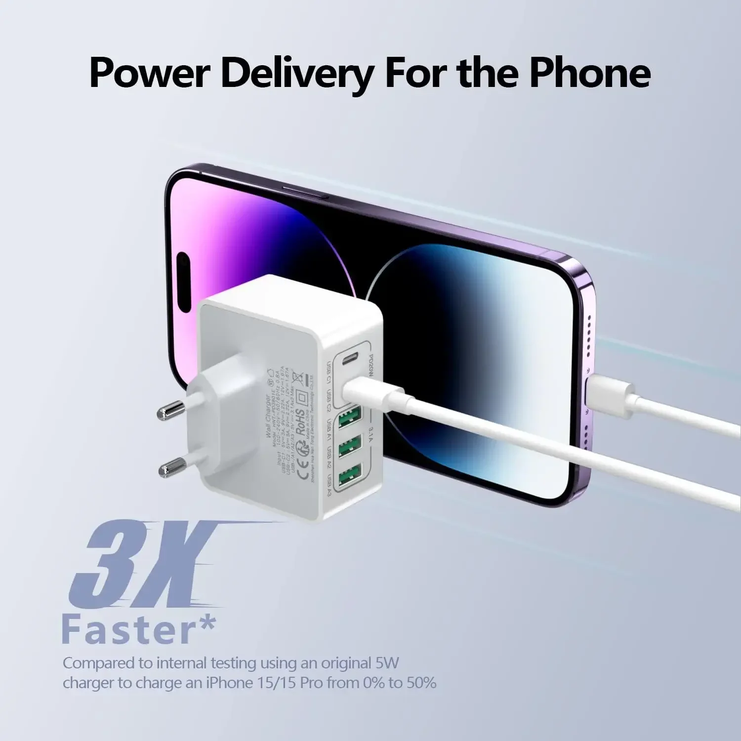 50W Cargador USB Multiple para Todas Las Series de Teléfonos, iPad, Tablet