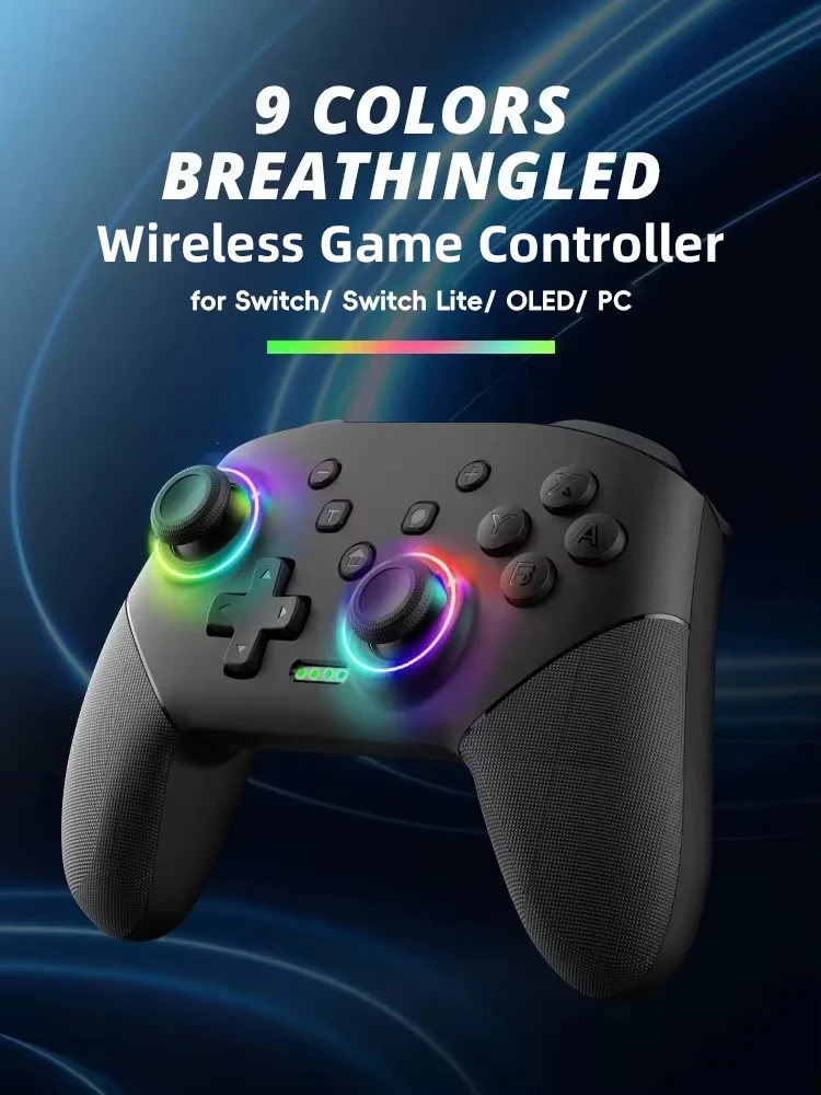 Wireless Game Controller, Programmable Pro Controller for Switch / Switch Lite / OLED Model / PC, One-Key Pairing Gamepad with 9-Color RGB LED Light, 800mAh Battery, 6-Axis Motion Control and Wake-Up Function.