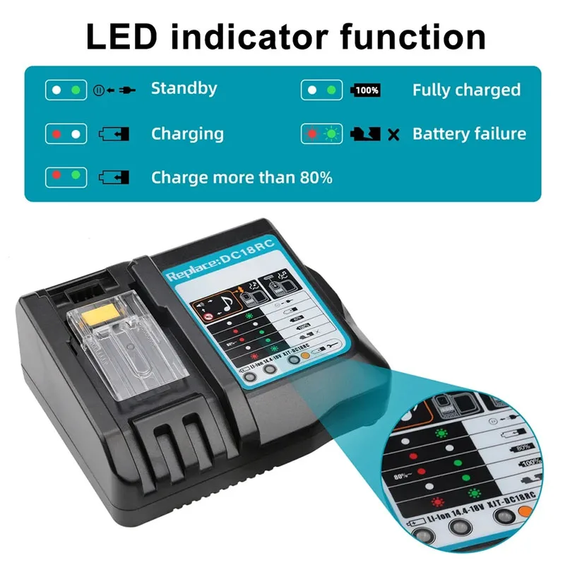 DC18RC Li-ion Battery Charger for Makita 14.4V 18V Battery BL1830 BL1430