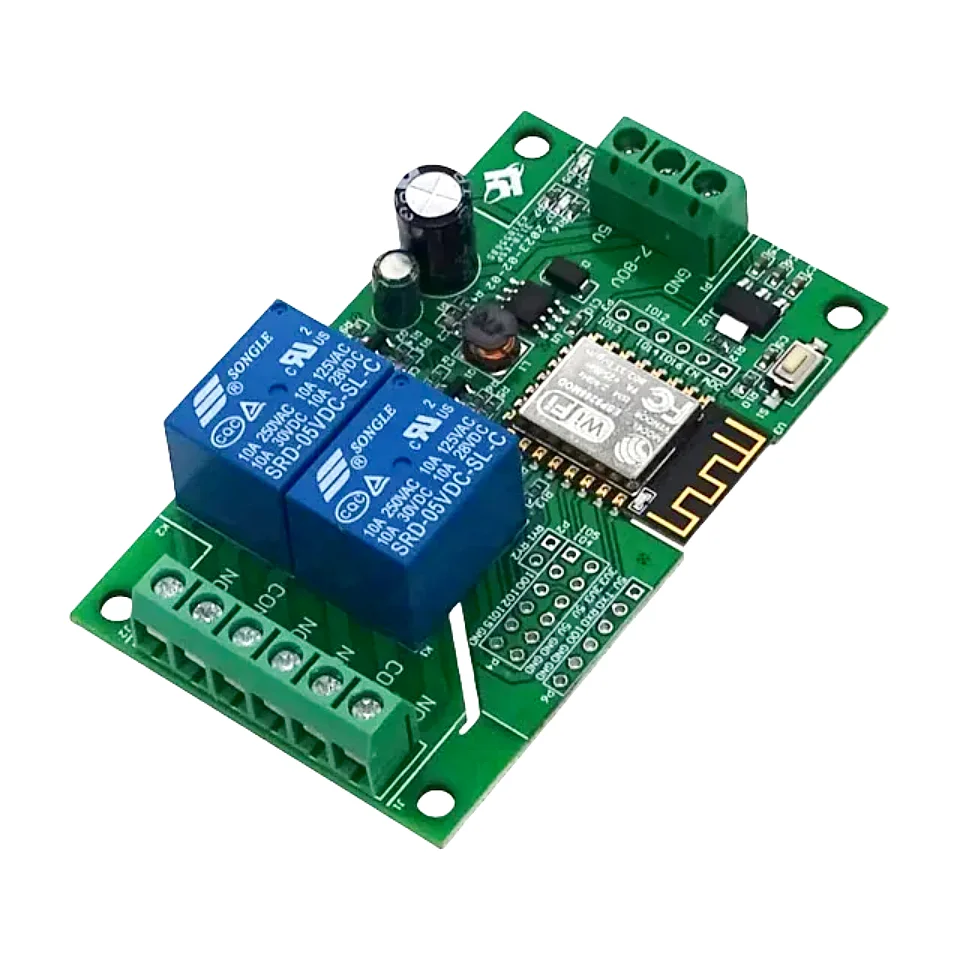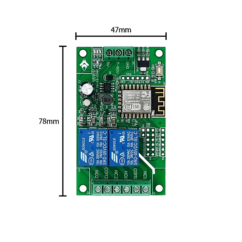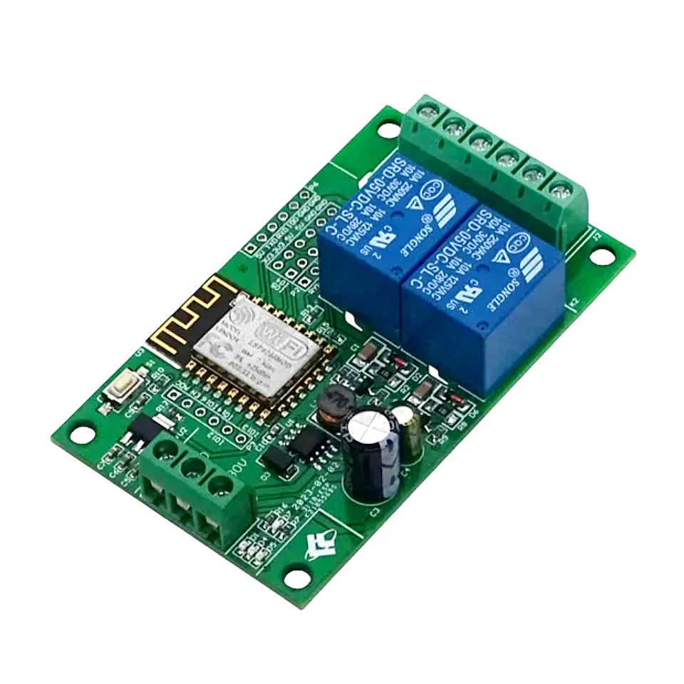 2 on board 5V relay, switch output signals, suitable for controlling loads whose operating voltage is 250V AC/DC 30V