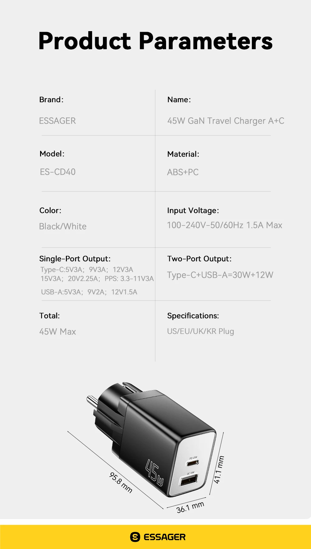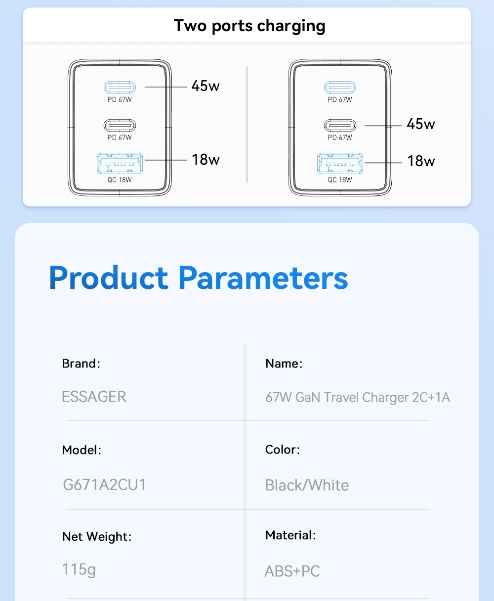 USB-C1+USB-A: 45W+18W