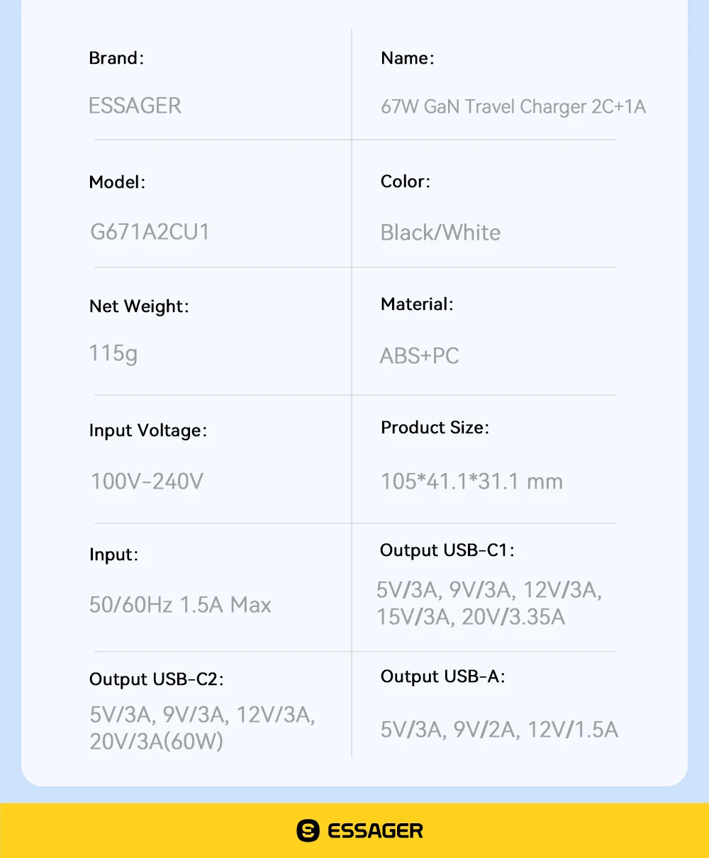 USB-C1: 5V⎓3A 9V⎓3A 12V⎓3A 15V⎓3A 20V⎓3.35A