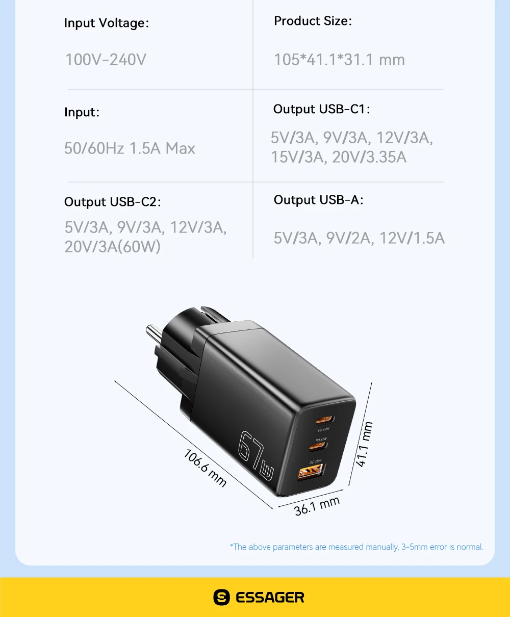 USB-C+USB-A=5.0V3A