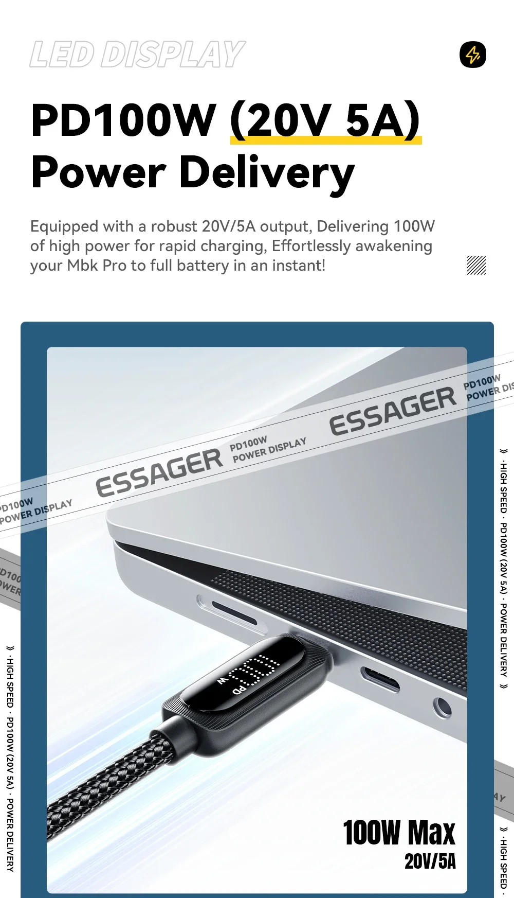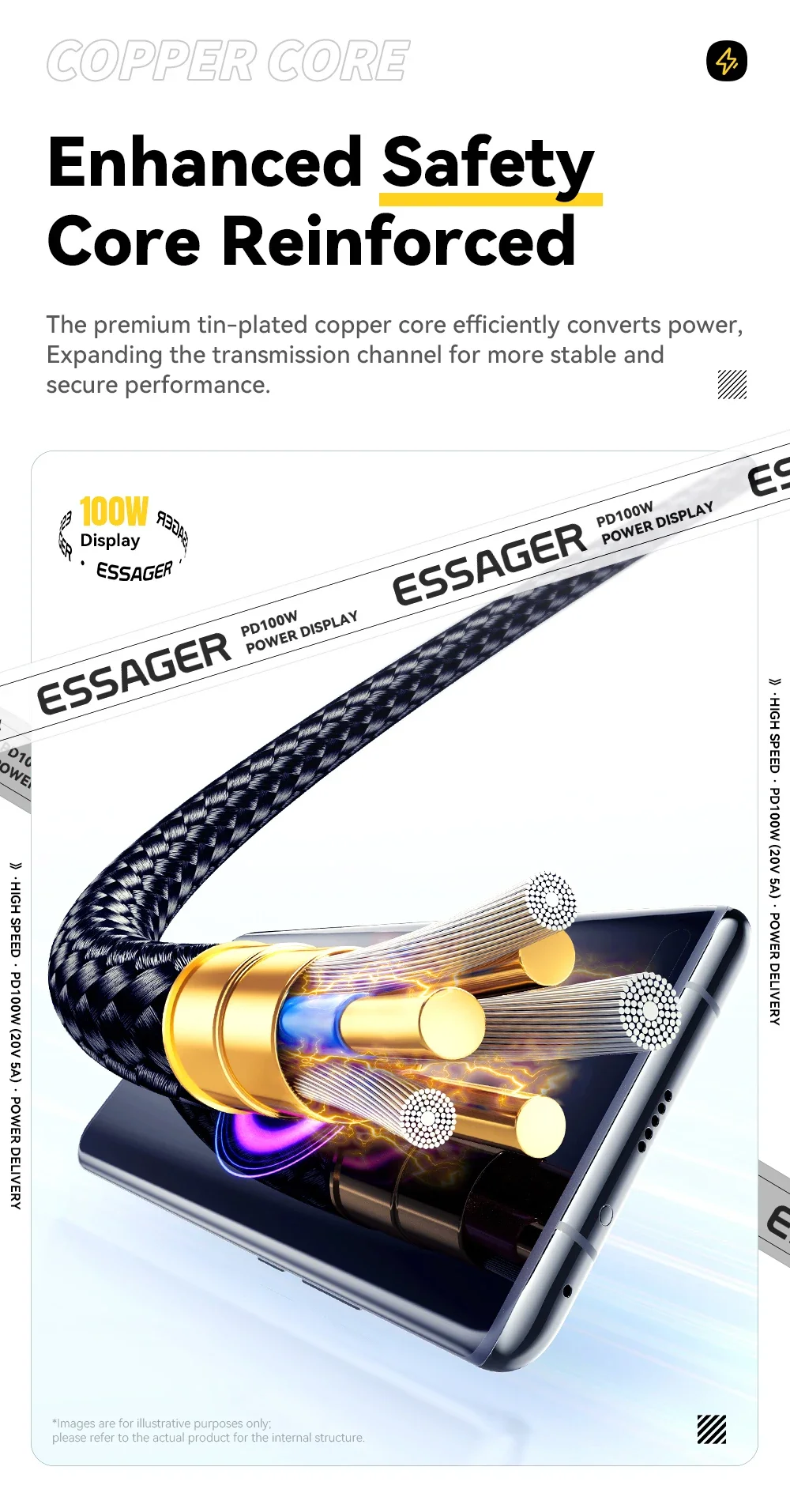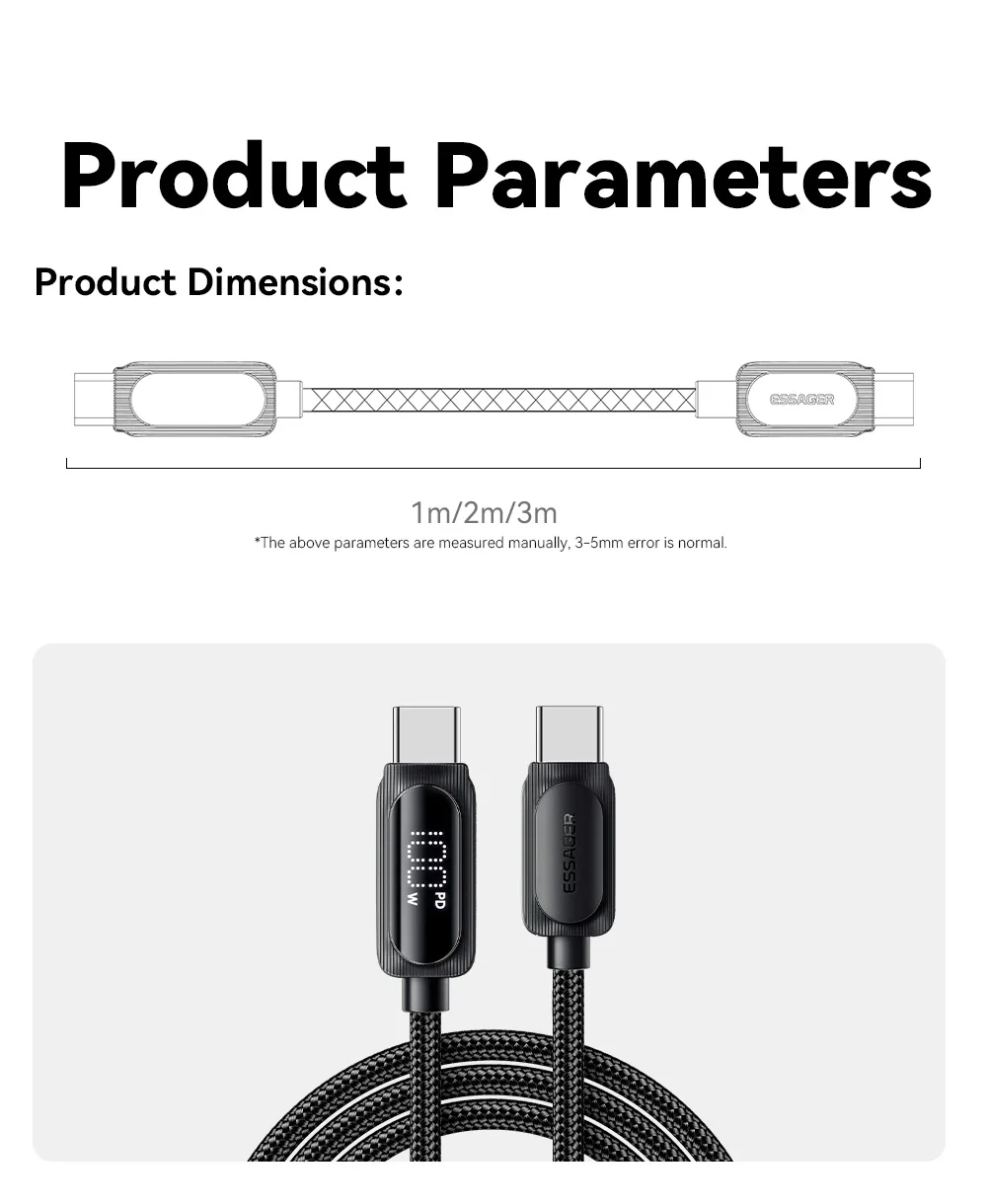 Essager USB Type C To USB C Cable 100W 5A PD Fast Charging Wire Cord For iPhone 16 Macbook Samsung Type-C Digital Display Cable