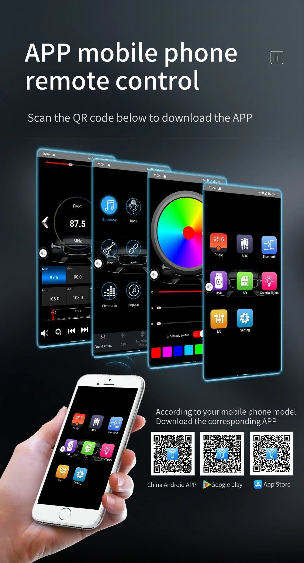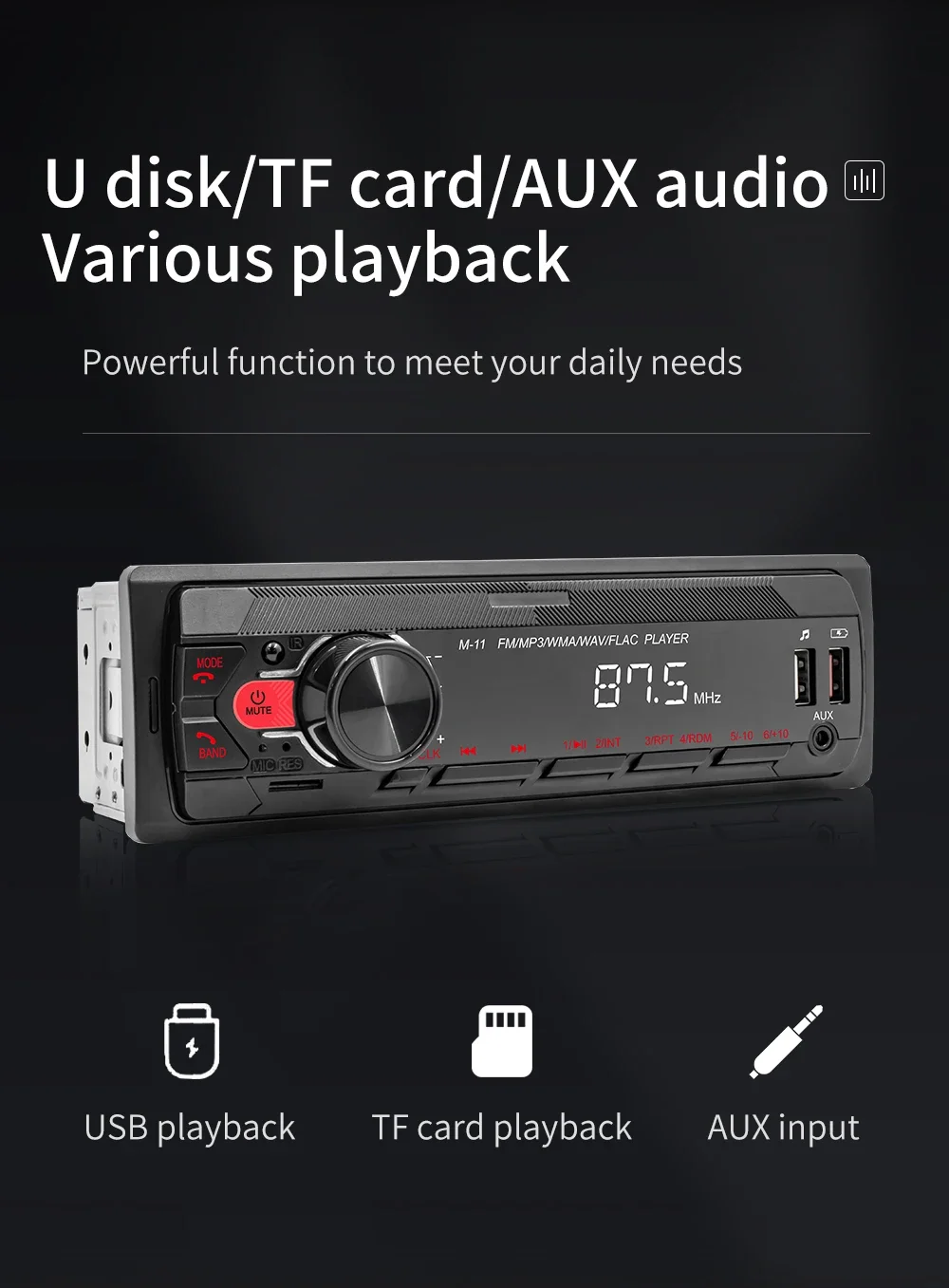 ESSGOO-Universal Multimedia Player for Car, 1 Din MP3 Car Radio, Audio Stereo, Bluetooth, Automotive, Colorful Buttons, 1 Din