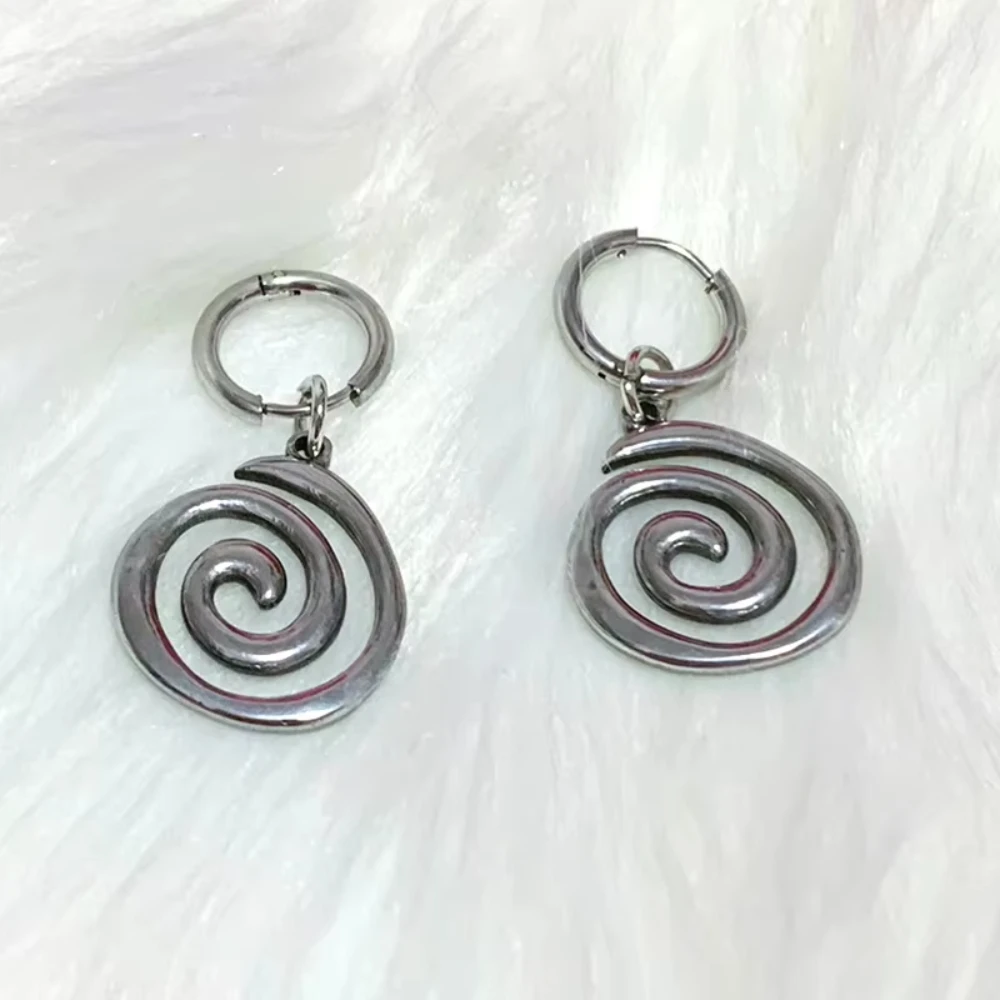 Ethnic Silver Color Metal Round Earrings Personality Retro Geometry Make Old Spiral Dangle Earrings for Women Fashion Gift