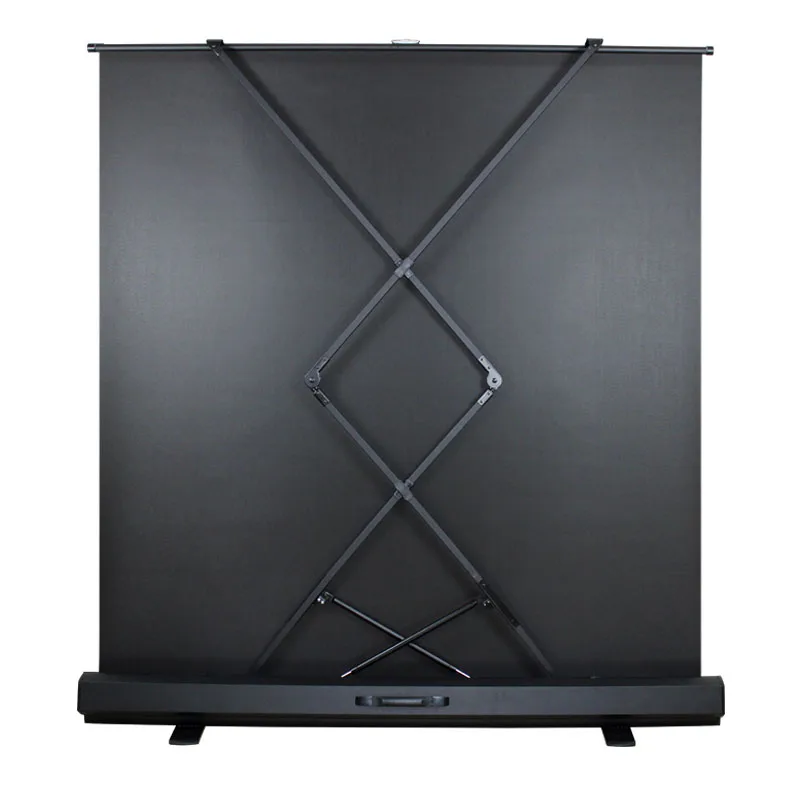 This Floor Standing Projector Screen, We usually have 60″ 72″ 80″ 84″ 92″ 100″ 110″ 120″ in stock, and other sizes are customizable. We have four material, “White Fiber Glass”, “Grey Fiber Glass”, “3D Metal”, “ALR Fabric”. The price is for White Fiber Glass. Please contact us for other types of material.