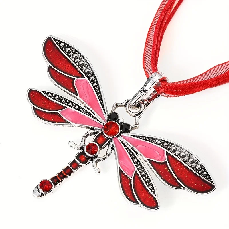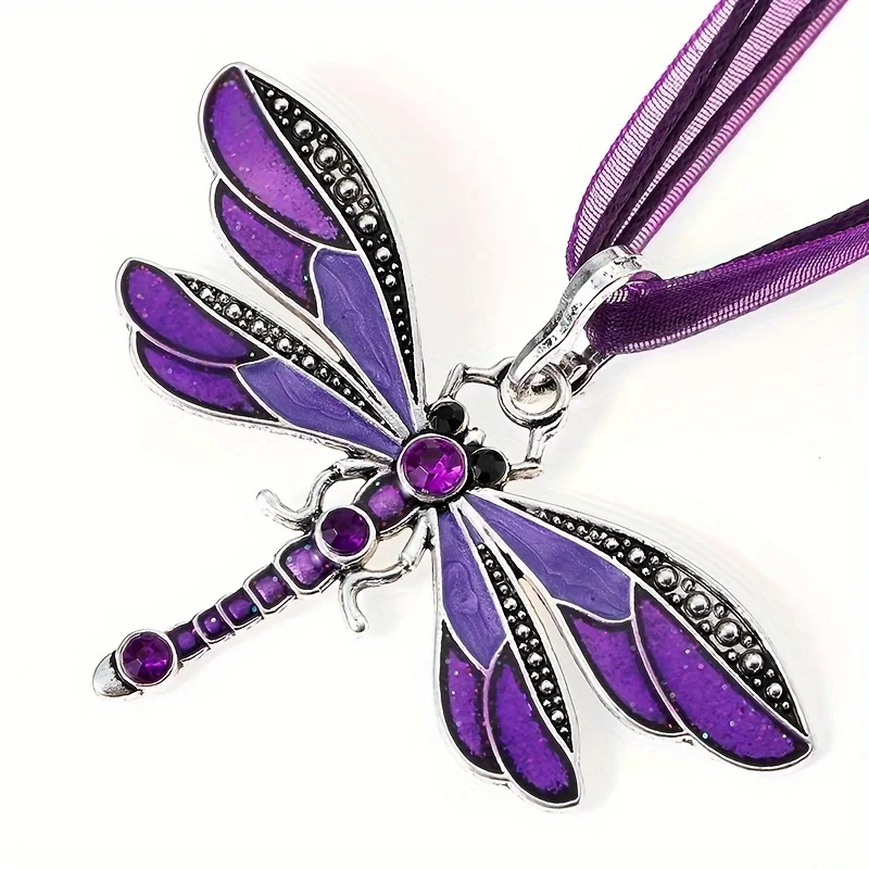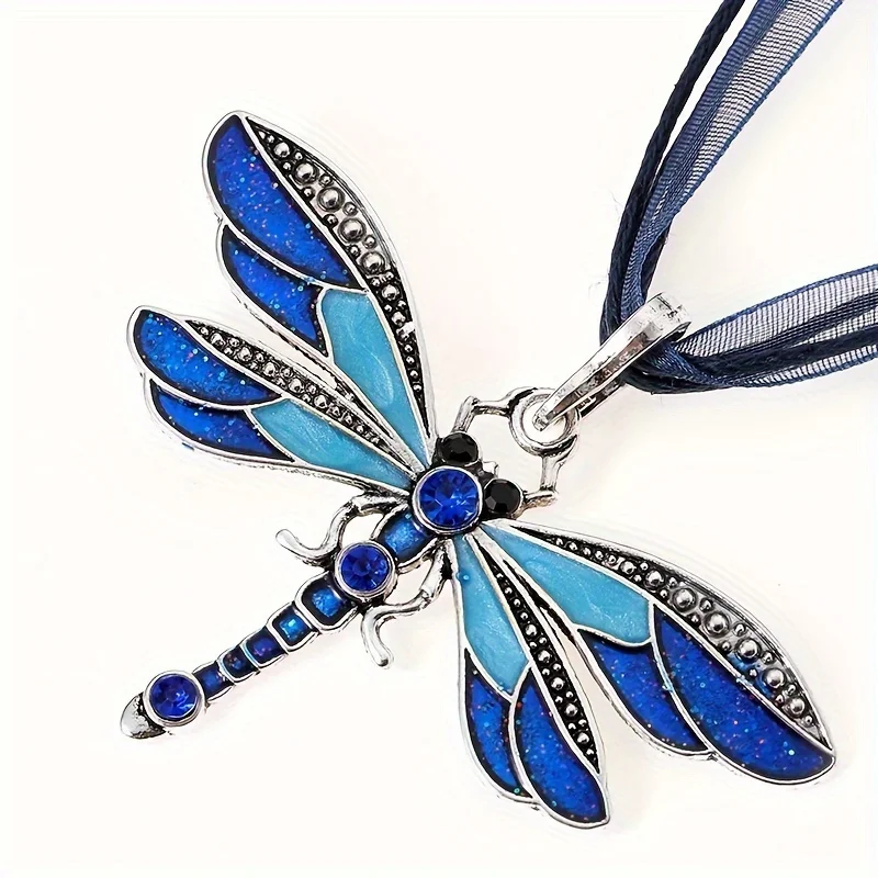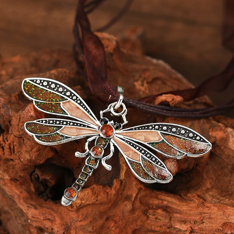 Fashion Crystal Dragonfly Pendant Necklaces for Women Vintage Insect Multi Layers Rope Necklace Jewelry Thanksgiving Gift