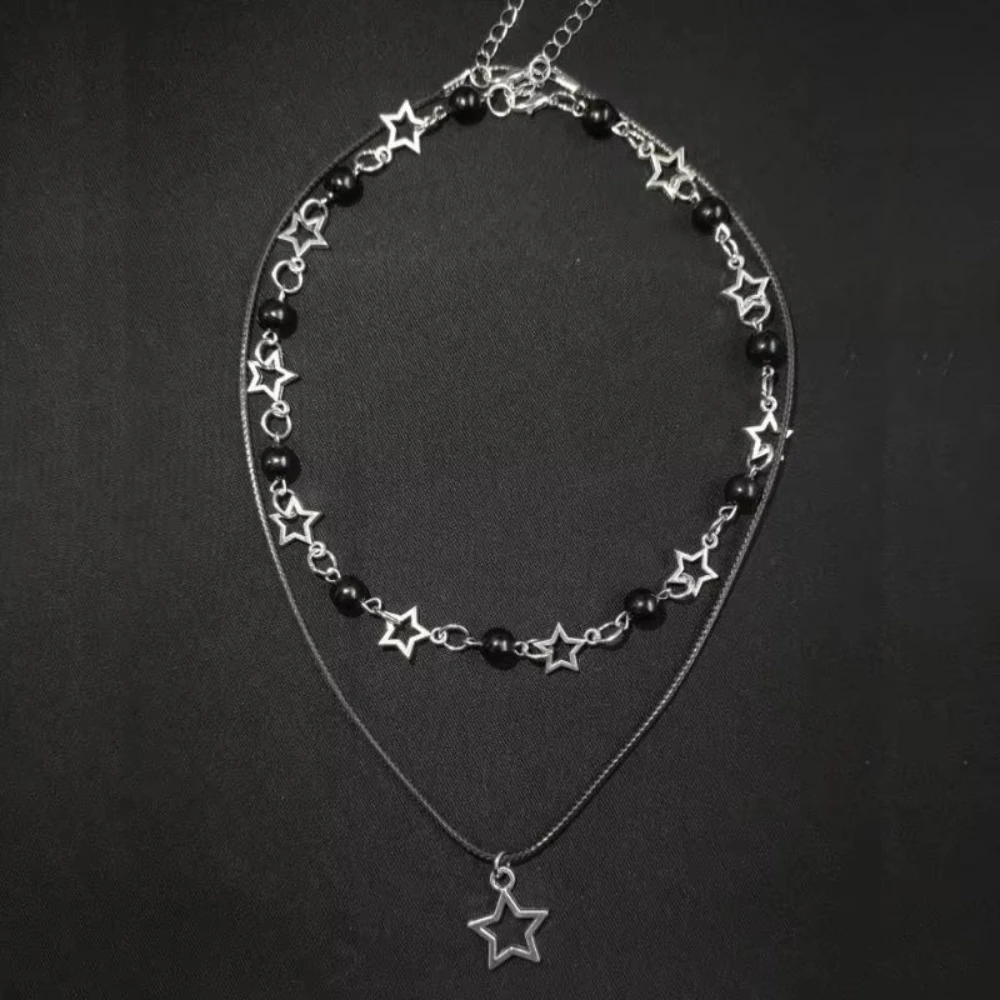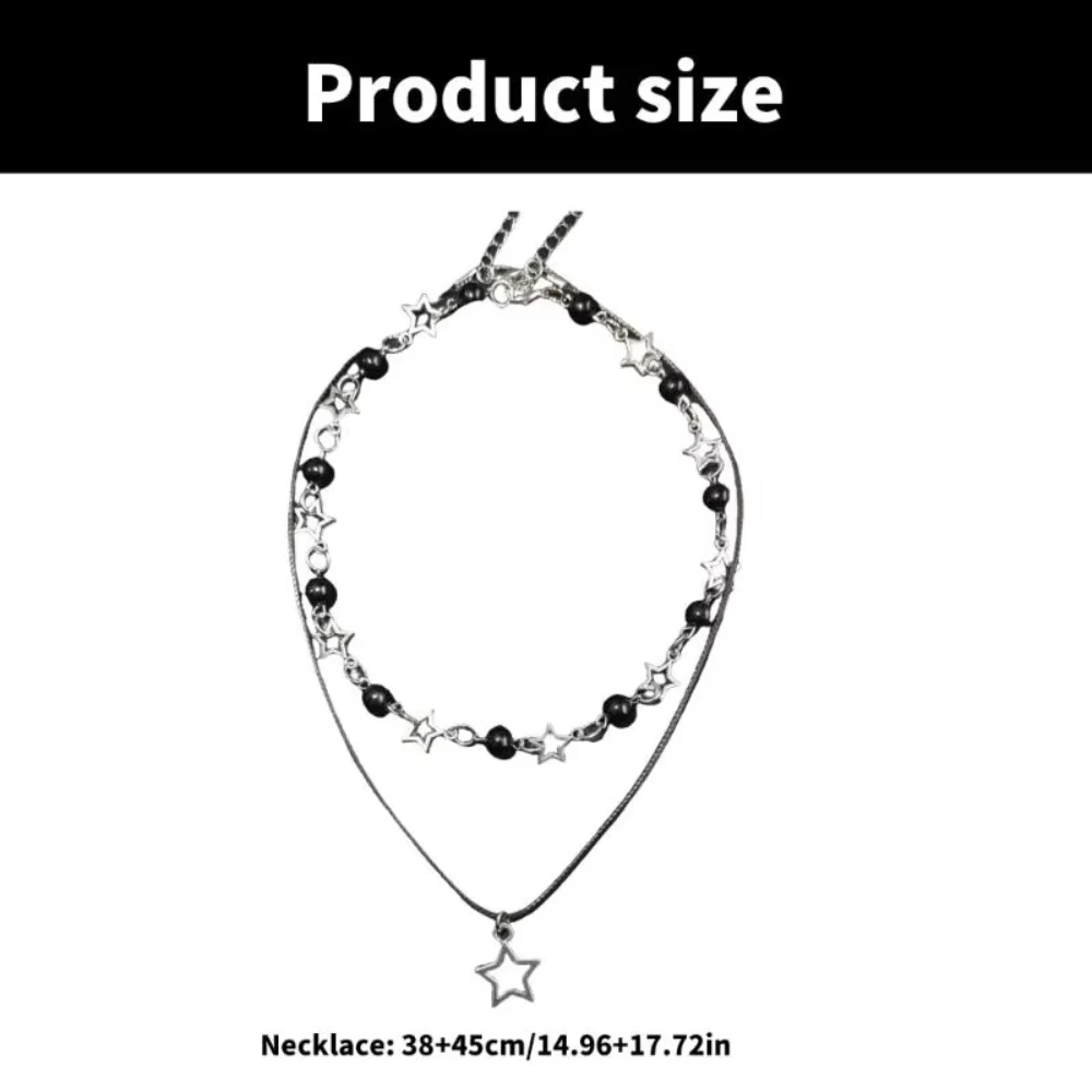 Fashion Double Layered Black Bead Star Choker Necklace Punk Pentagram Leather Rope Necklaces For Women Girls Gift