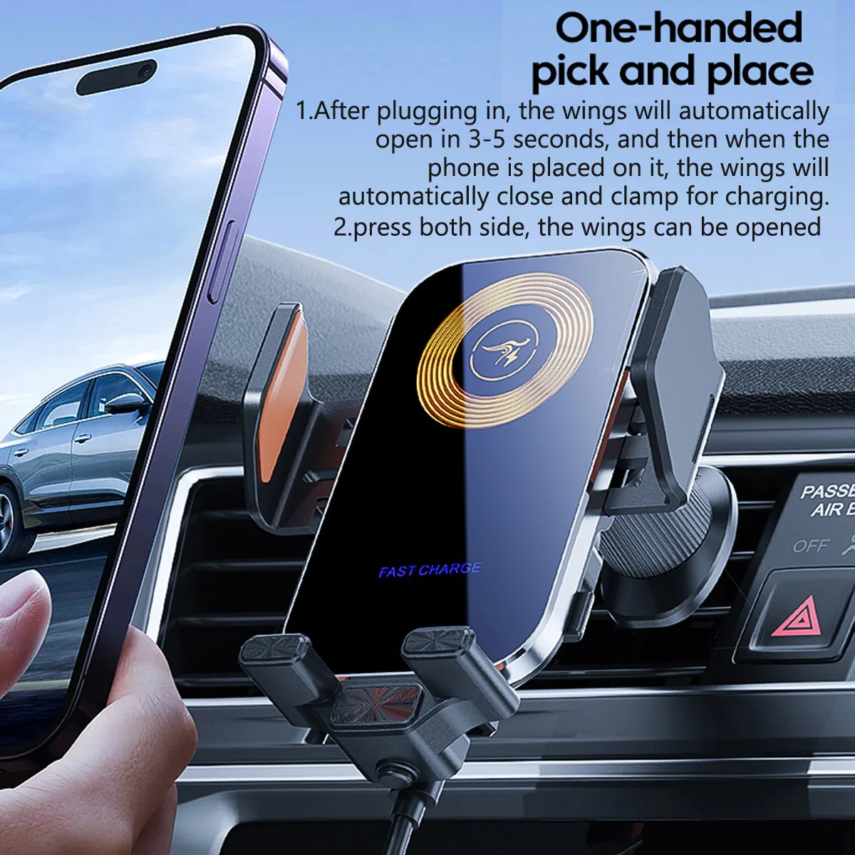 Fast Wireless Car Charger Mount Phone Holder Phone Charging Compatible for iPhone 14/13/12/11 Pro Max/XS For Xiaomi For Samsung
