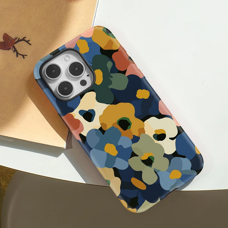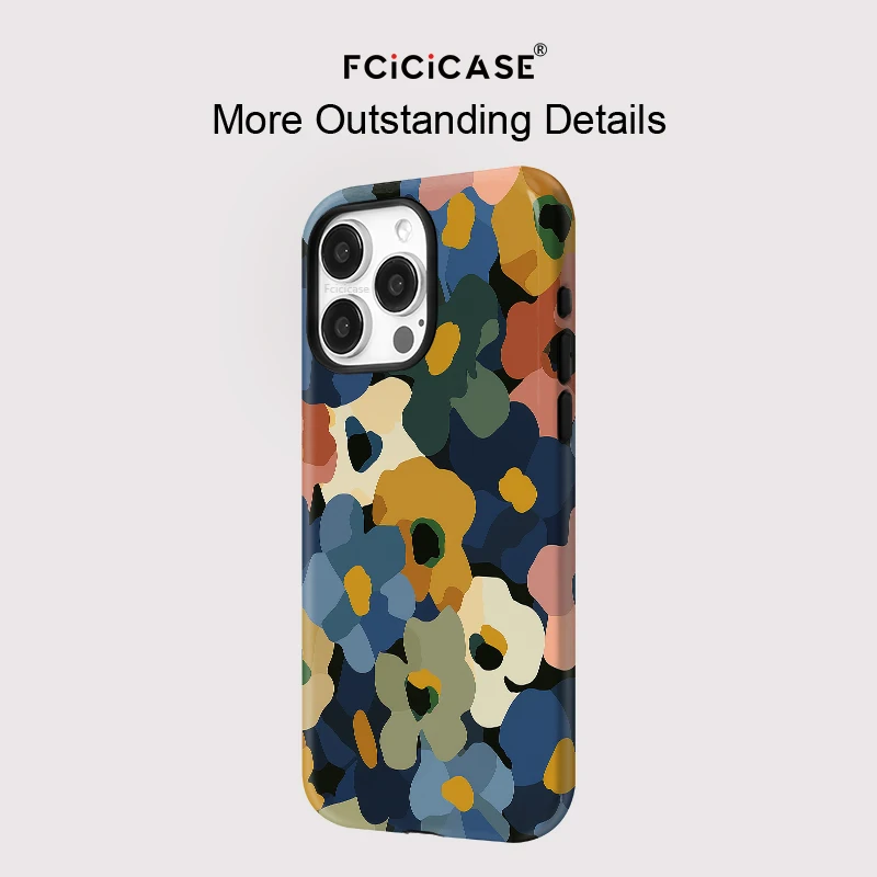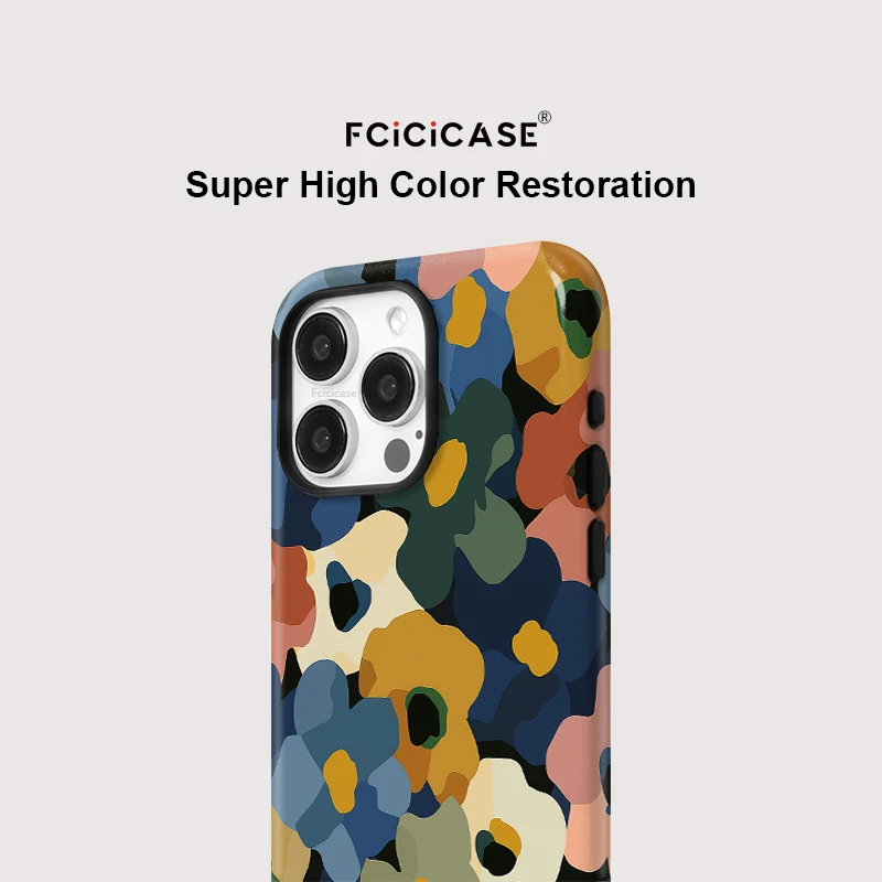 Fcicicase For Magsafe Magnetic Phone Case For iPhone 14 Plus 13 Pro 12 11 16 15 17 Pro Max Double-layer Cartoon Flower Cover