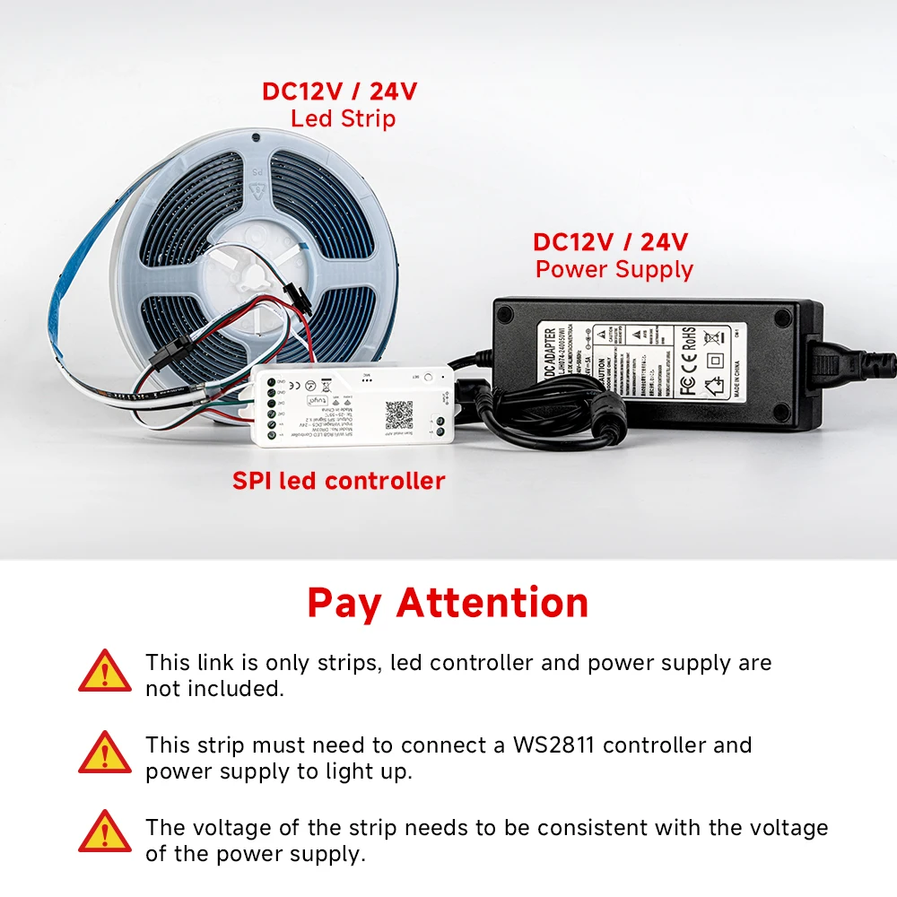1. The Price is Only LED Strip, Not Included Power Supply and Pixels Controller.Please be comfirm it before you place the order.