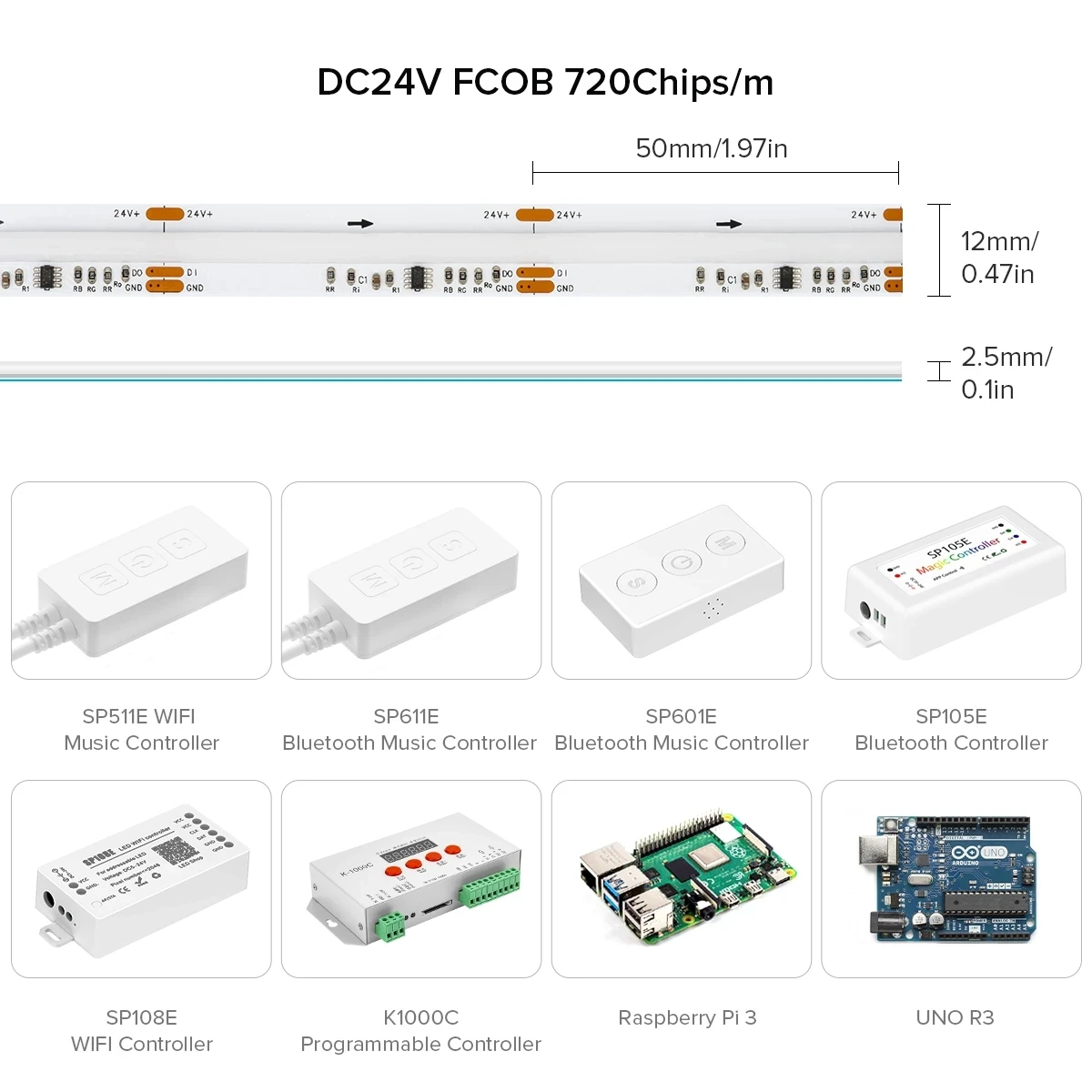 FPCB width: 720leds/m–12mm;630leds/m–10mm