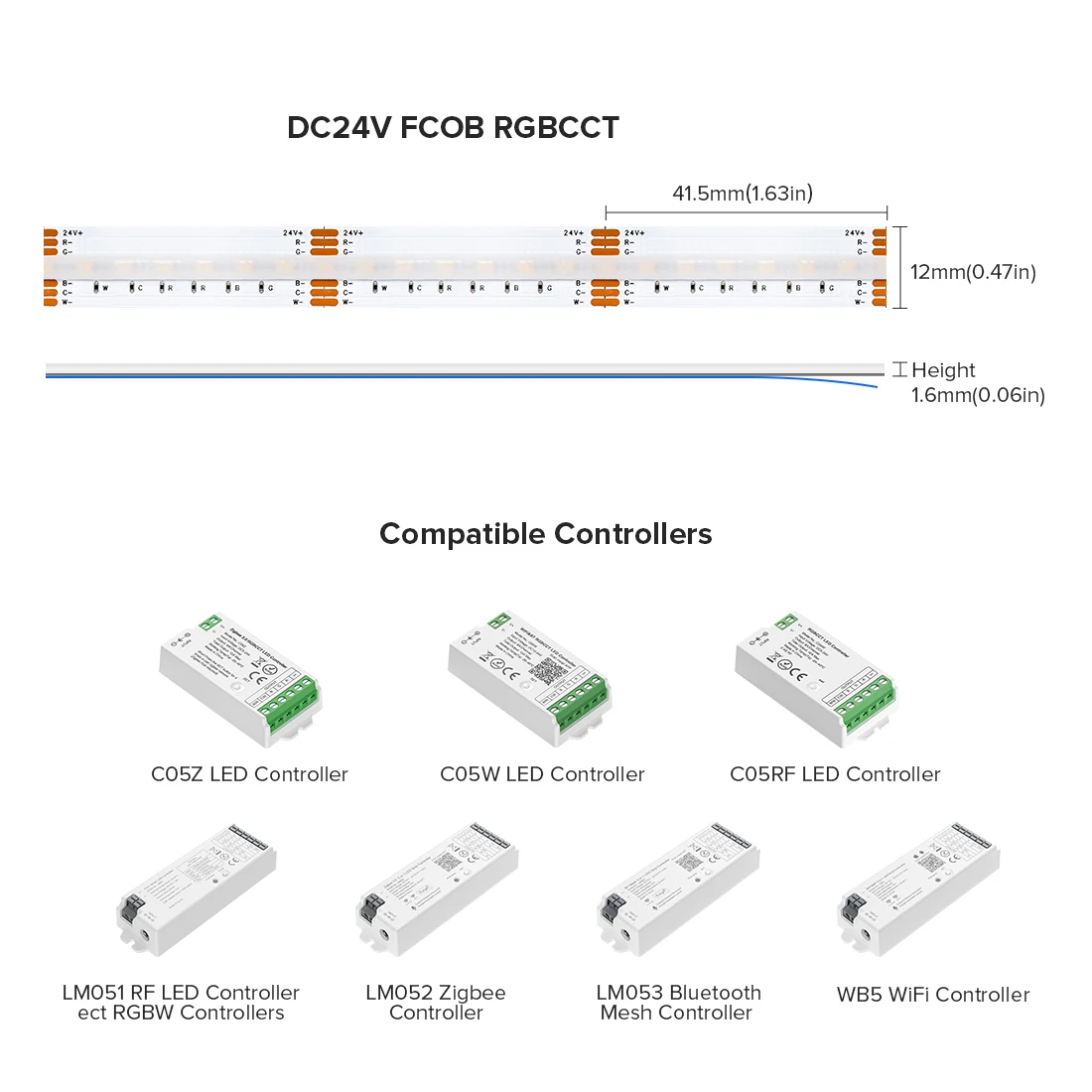 Compatible with most of the 6pin RGBCCT controllers in the markets.