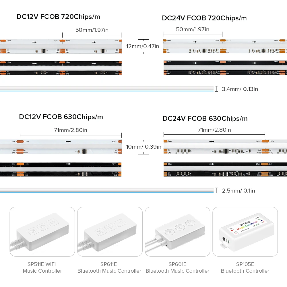 LED Quantity: 720 LEDs/M, 630 LEDs/M.
