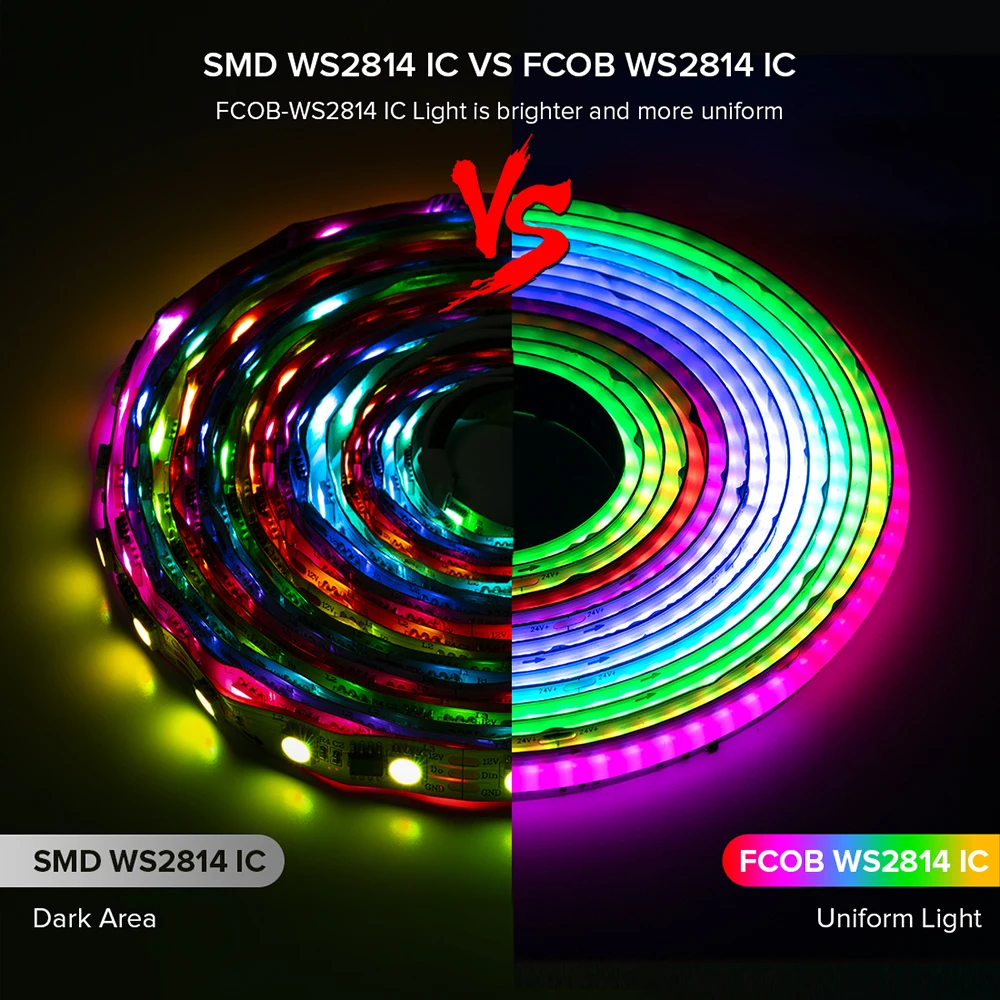 FCOB SPI RGBW IC LED Light Strip WS2814 Addressable 784 LED Dream Color DC24V SK6812 High Flexible FOB COB Lights RA90 IP30