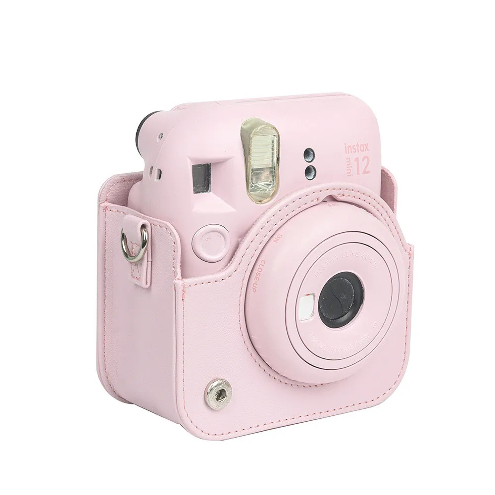 For Fujifilm Film Camera Bag for Instax Mini 12 11 Camera Case PU Leather Soft Silicone Cover Bag with Shoulder Strap Pink
