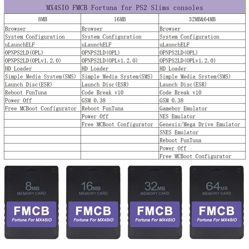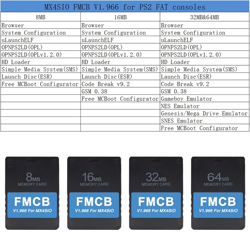 FMCB card has the Newest OPL program, specially designed for MX4SIO SIO2SD TF/SD card adapter.