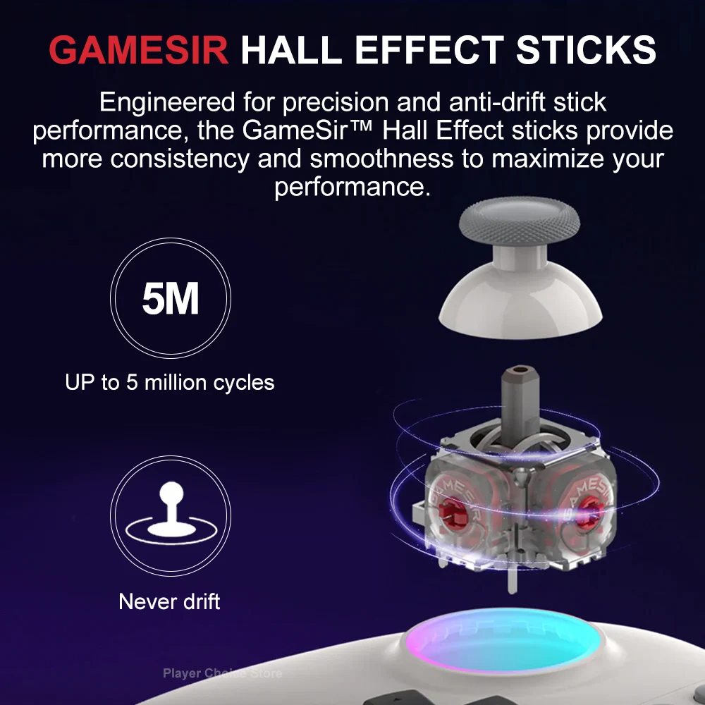 Engineered for precision and anti-drift stick performance, the GameSirâ„¢ Hall Effect sticks even provide more consistency and smoothness to maximize your performance, thanks to specially optimized algorithms