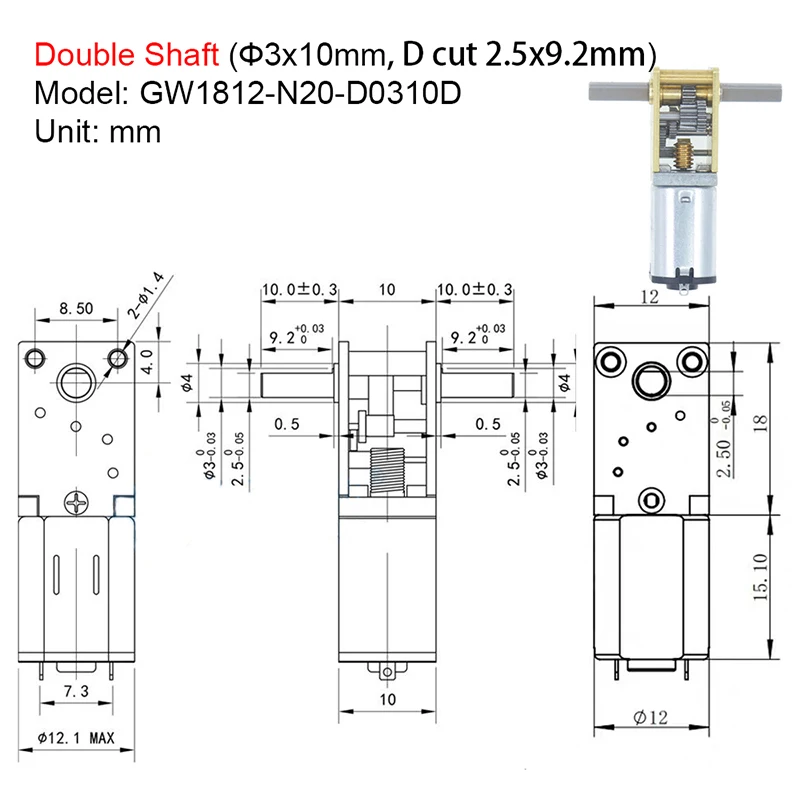 Shaft Size: 3mm(diameter) * 10mm(length)