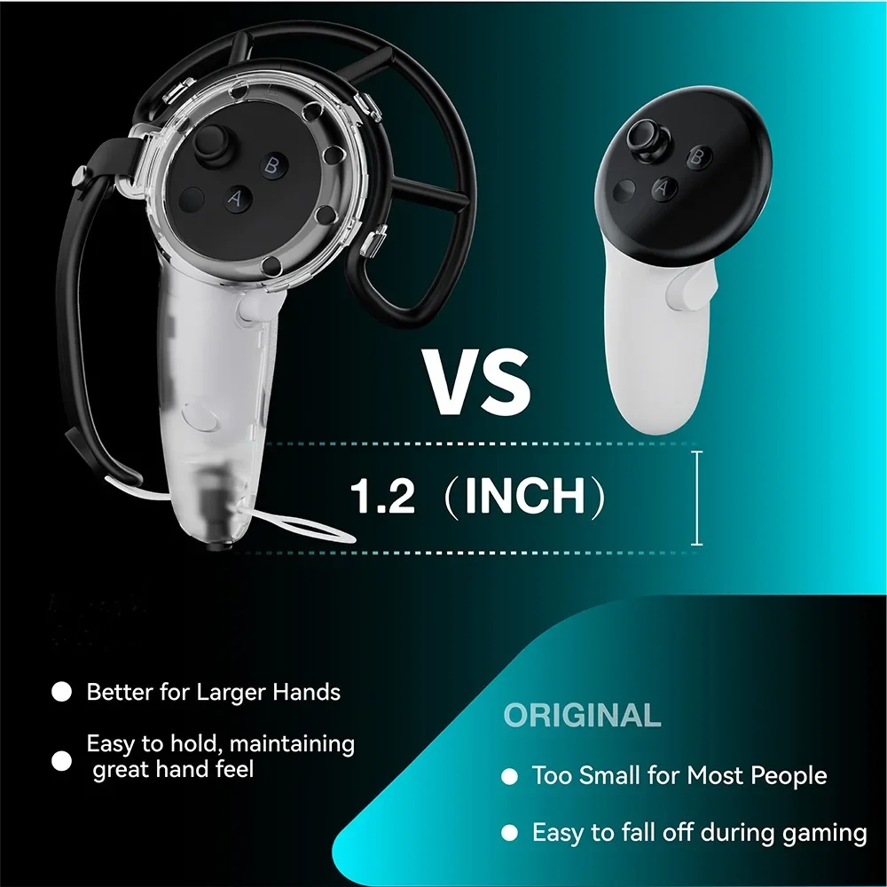 1. **Extended Comfort:** The upgraded strap provides extended support for your hands, ensuring a comfortable and secure grip during intense gaming sessions on the Meta Quest 3.