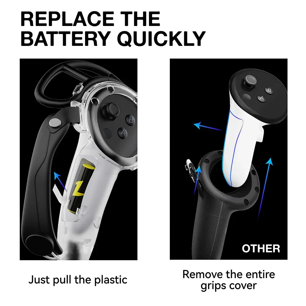 Introducing our Upgraded Extended Accessories Strap for Quest 3, a versatile controller grip designed to enhance your Meta Quest 3 experience. This innovative accessory comes with a Battery Open Protector and Bumper Shelf, elevating both functionality and protection.