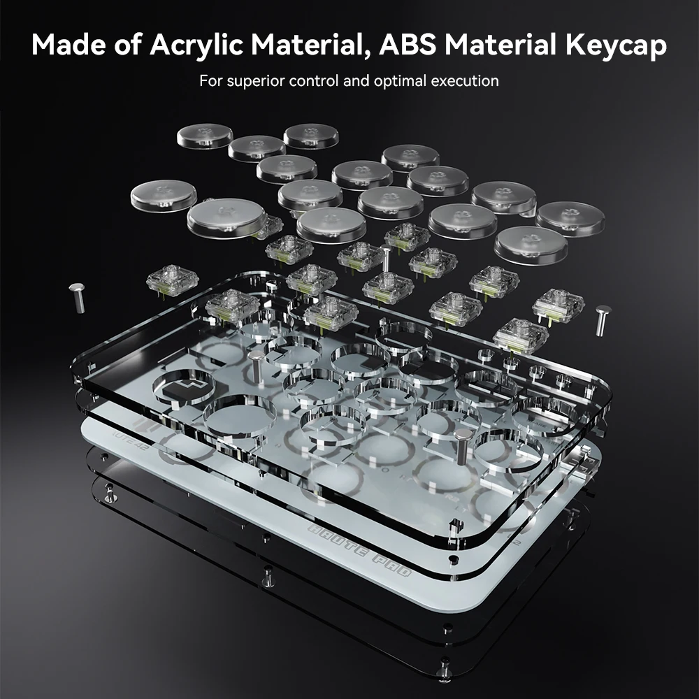 This is a transparent acrylic material with RGB lighting effect, an mini hitbox style arcade keyboard with 16 buttons, providing a comfortable feeling and allowing you to enjoy fighting games. Buyers can create their own hitbox skins to make the controller look cooler and more personalized