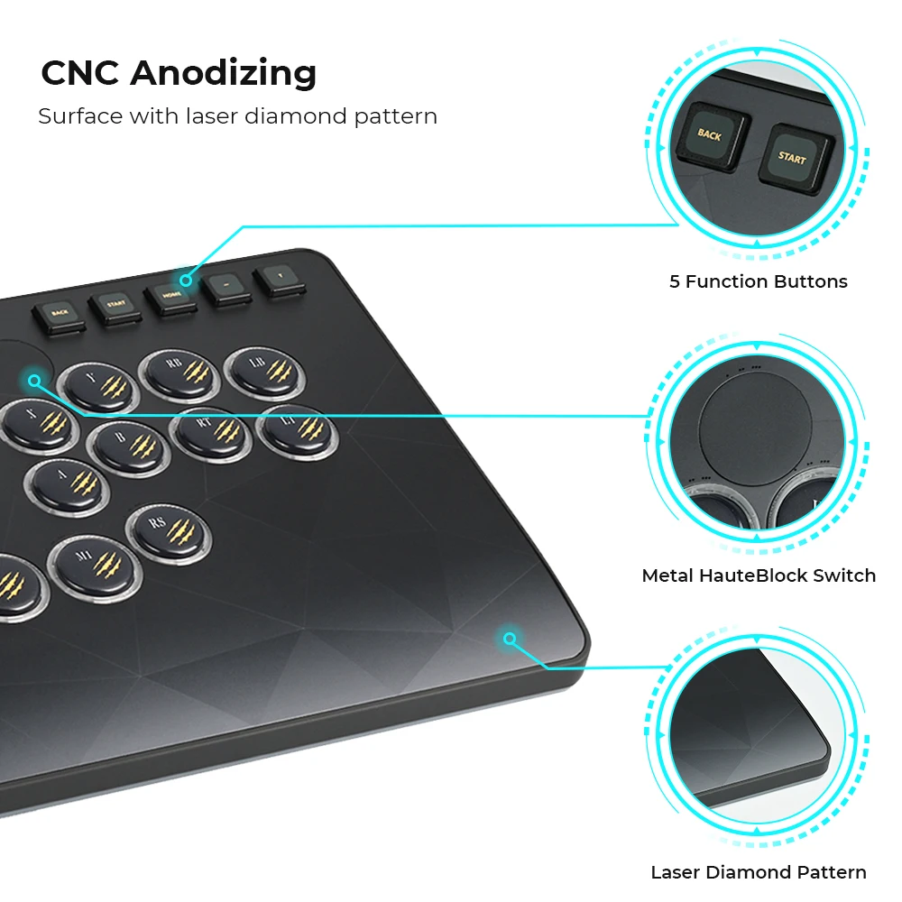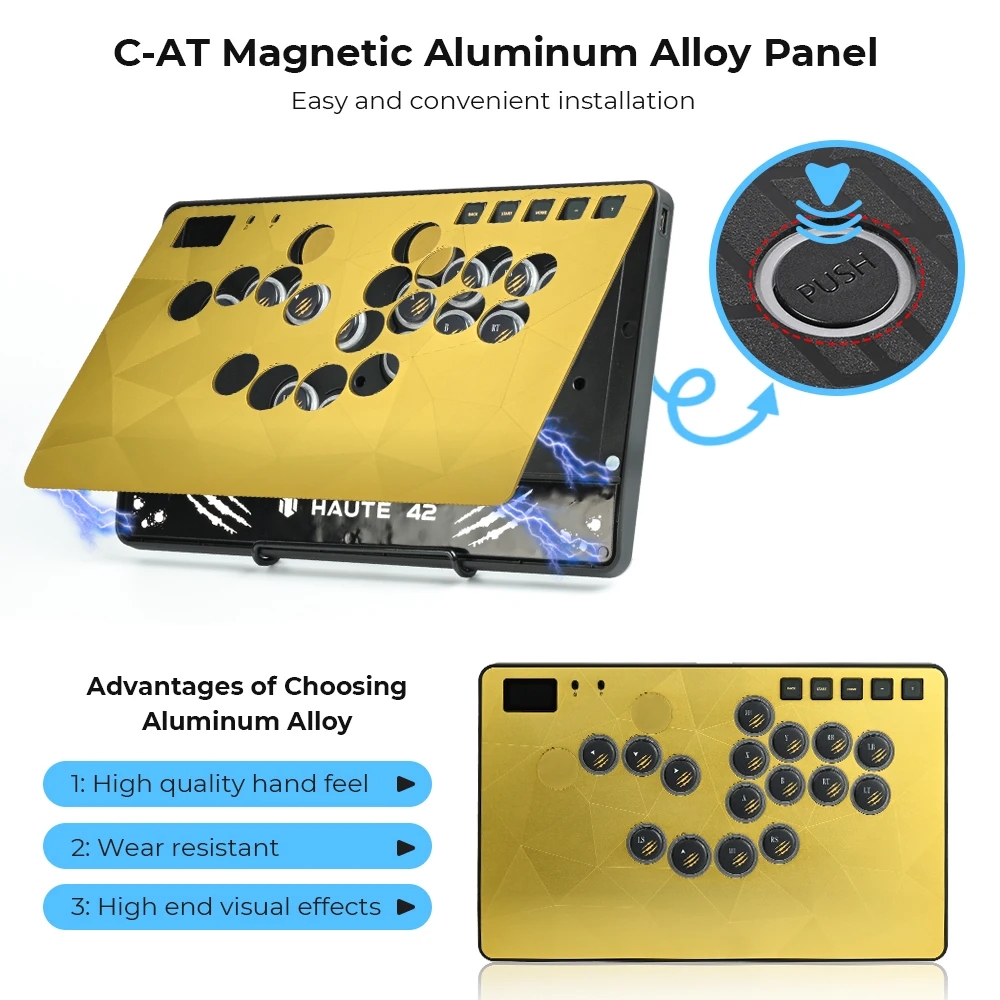 Haute42 HautePad C-AT Hitbox Leverless Controller Magnetic Aluminum Alloy Panel With Laser-Etched Diamond Pattern Metal Panel
