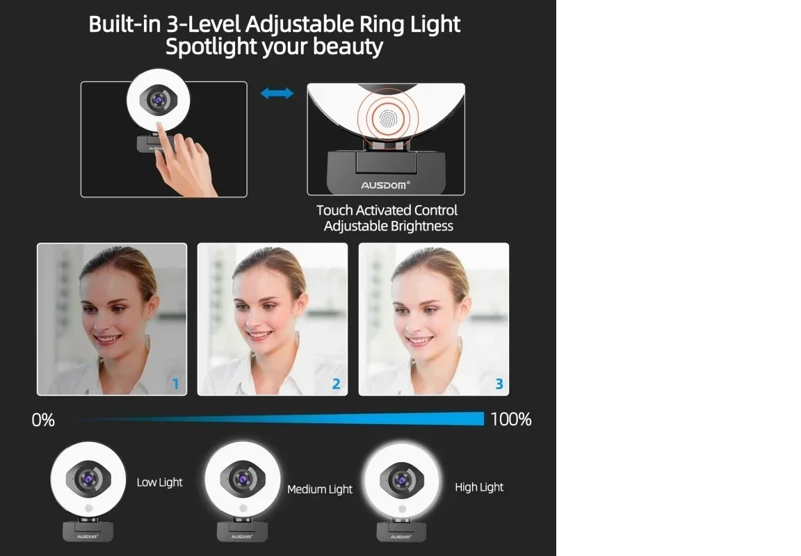 AUSDOM AF660 FHD 1080P 60FPS Webcam Autofocus 75 Degree Stream Cam With Adjustable Right Light Free Tripod For Live Streaming