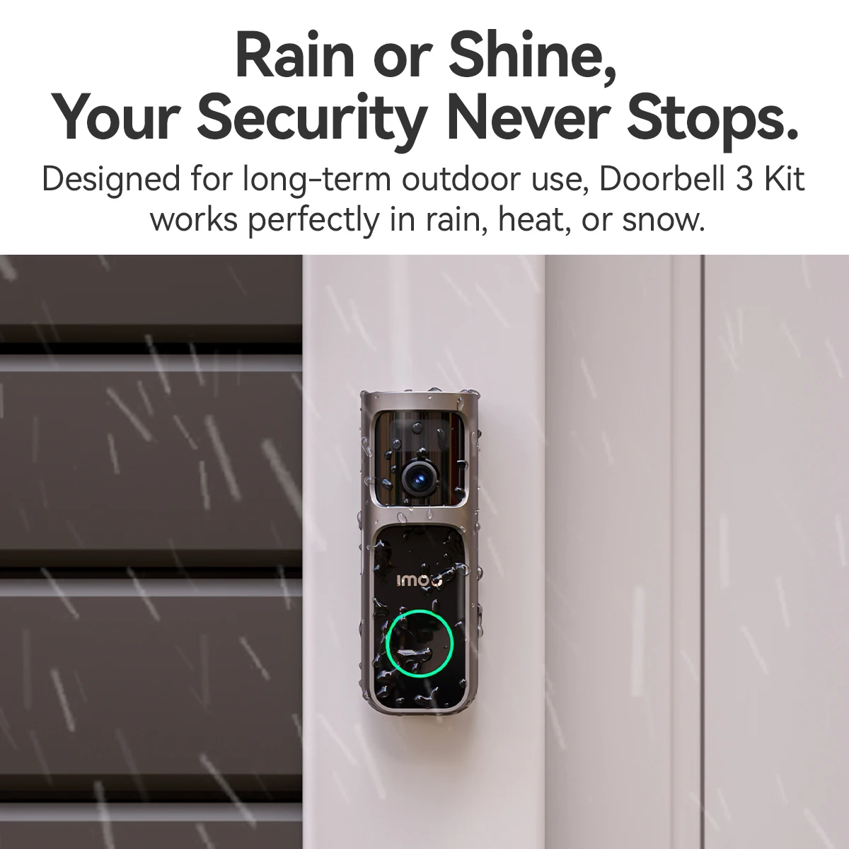 Designed for long-term outdoor use, Doorbell 3 Kit works perfectly in rain,heat.or snow.