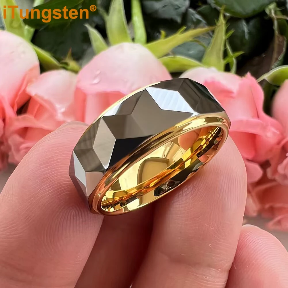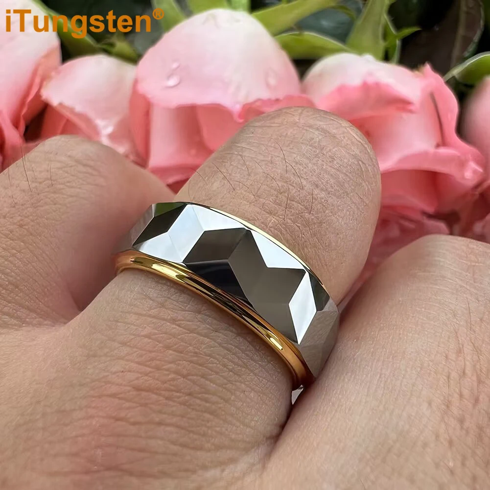 iTungsten 8mm Dropshipping Two Tone Face Ring Nice Tungsten Wedding Band For Men Women Stepped Polished Finish Comfort Fit