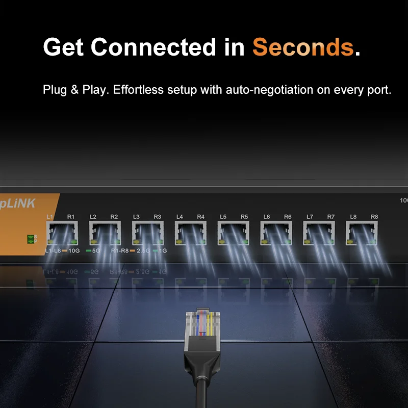 • 8 ports of multi-gig 1G/10G speeds to connect devices instantly and give them each exactly the speed they need: 1G or 10G automatically.
