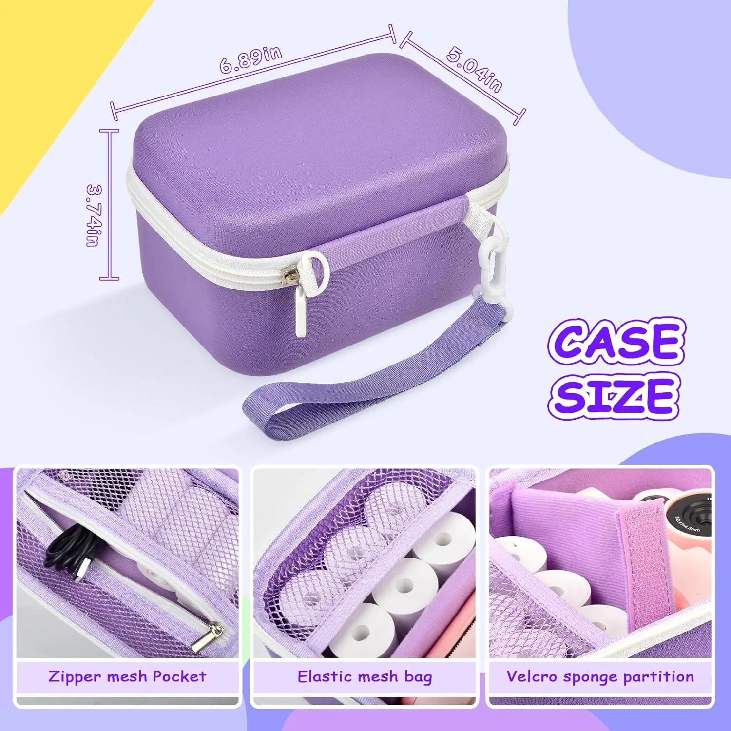 Kids instant print camera case holder with universality: Digital camera storage bag for toddler fits for Dylanto for DUDUDRAGON for Polaroid for HiMont for Gofunly for LETSHAHA for Yosfeng for GKTZ for Anchioo for WEEFUN for MEETRYE for BESTOONE, 2.56 inch internal depth keeps kids print video small camera’s protruding lens free from pressure. External size:6.89*5.04*3.74 in (Case only)