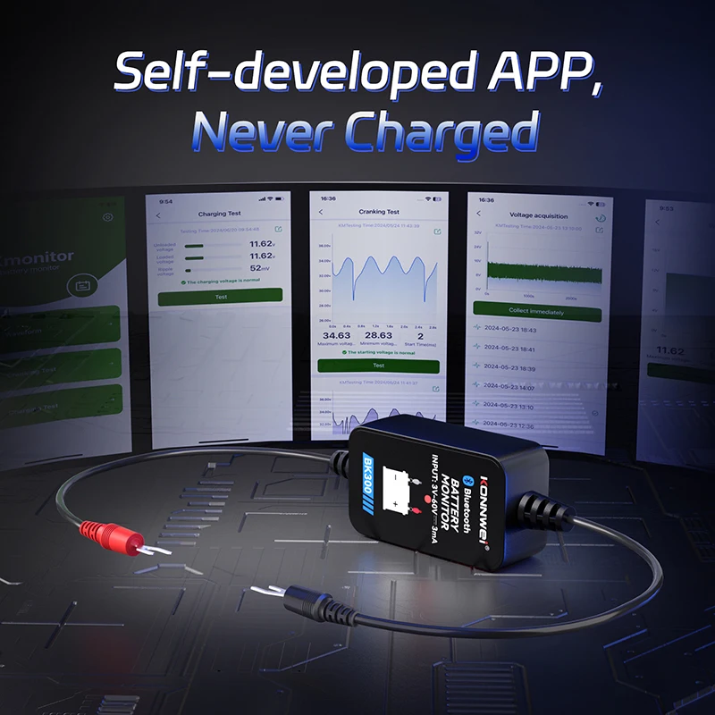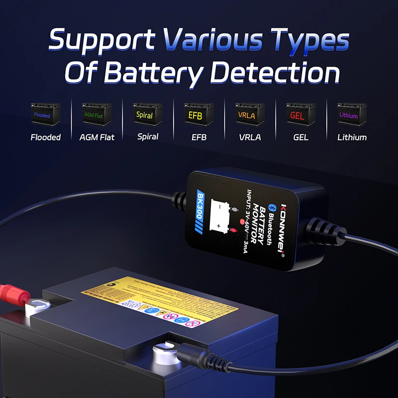 KONNWEI 6V-12V-24V Car Battery Monitor Bluetooth Connection APP Real-time Viewing of Battery Status Car Battery Charging Monitor