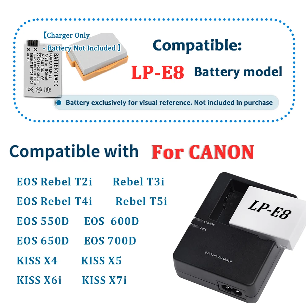 LC-E8 Battery Charger for Canon LP-E8 – Compatible with EOS 600D 650D 700D 550D,Rebel T2i,T3i,T4i,T5i; Kiss X4, X5, X6i Camera