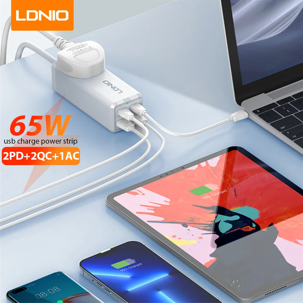 LDNIO 65W USB C Charger 4 Ports USB Power Strip With 2M Extension Cord Desktop Charger Fast Charging For Iphone 13 12/Samsung/Huawei/Xiaomi