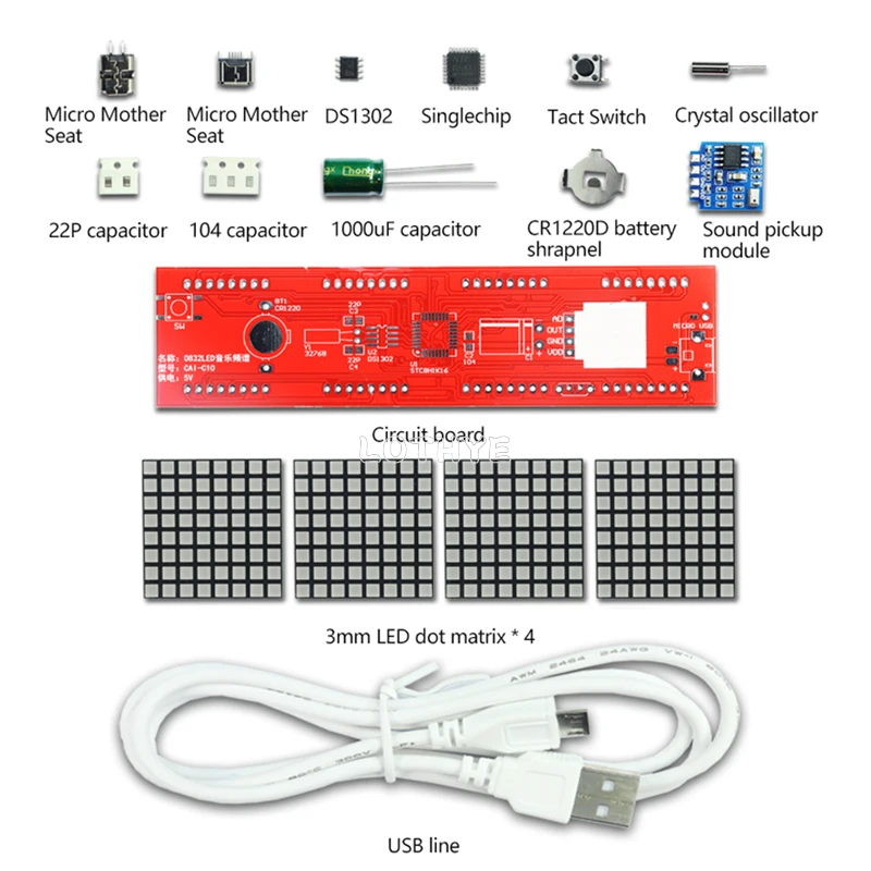 LED Music Spectrum Pickup DIY Making Kit Voice Activated Clock Flashing Soldering DlY Electronic Kit Car Atmosphere Lamp