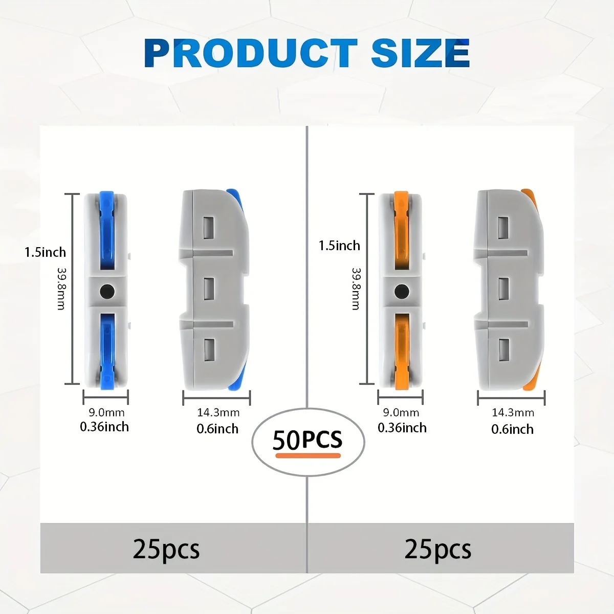 Lever Wire Connectors 50-Piece Inline Wire Connectors kit for Quick Connect Push in Compact Splicing Electrical Connectors