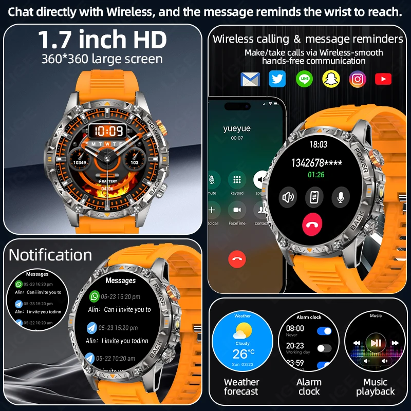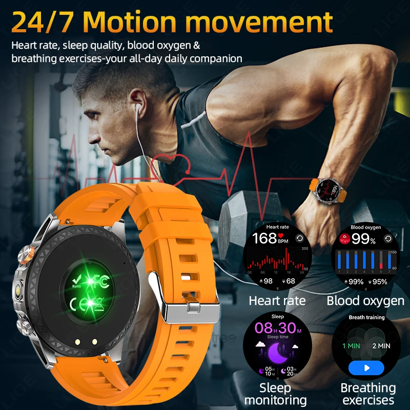 Basic functions:Time and date display, step count, calories, distance, stopwatch, countdown,Heart rate monitoring, blood oxygen monitoring, sleep monitoring (sleep duration, sleep quality),Watch brightness adjustment, watch MAC address viewing,Data, sports, sports records, weather, information, women, music,Sidebar, stopwatch, timer, alarm clock, QR code for payment, business card, calendar, calculator, search phone, camera, compass,There are 9 sports modes on the watch end and over 100 sports modes on the APP end,The watch’s front interface features 5 switchable watch face UIs and 1 customizable watch face UI
