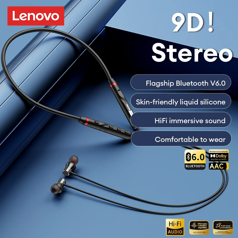 Original Lightweight Lenovo Y111 Neckband Wireless Headphones Bluetooth 6.0 Sport Neckband Earphones Sport Earbuds Waterproof 12H Playtime 0.06s Low Latency