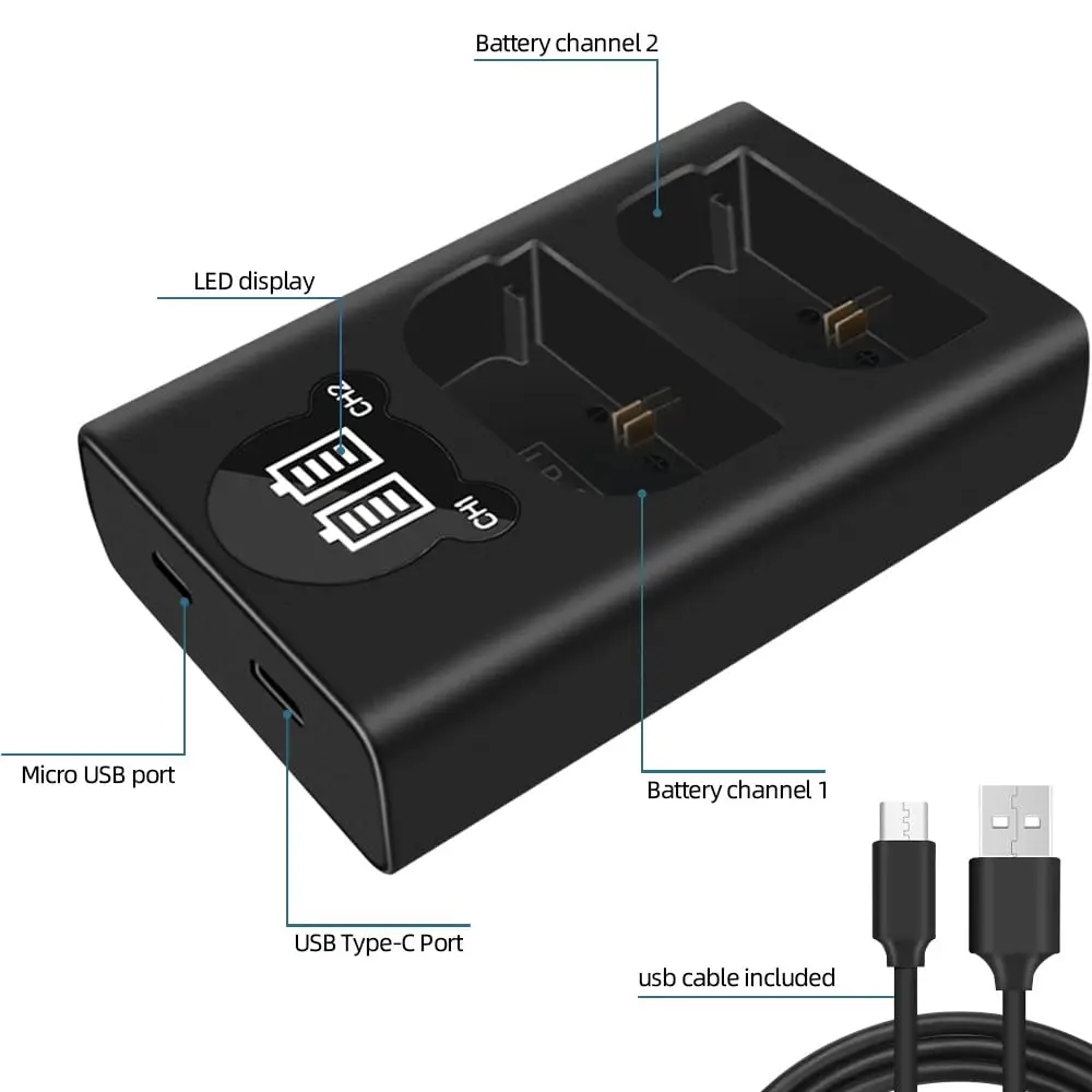 1.LED USB Dual charger, can charge 2 batteries at the same time.