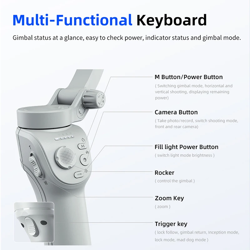 M01 AI Face Following Light Stabilizer with Mini Tripod Smart Gimbal Selfie Stick for YouTube Live Streaming and Travel Portable