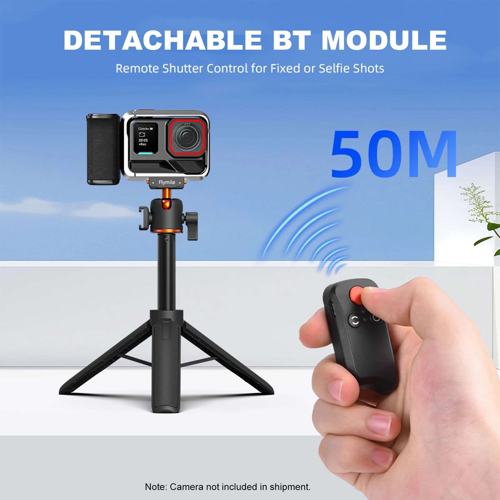 Features: 1.Magnetic Bluetooth-compatible Module, Effortless Shooting: The camera grip handle holder set features a magnetic Bluetooth-compatible module for seamless quick pairing. Simply press the grip button to capture photos easily, eliminating the need for separate shutter components. 2.Precision Dual Adaptation: This street grip kit is engineered for precise compatibility for Ace Pro 2 and lnsta360 X5, allowing direct installation and efficient switching between both camera models without hassle. 3.Detachable Bluetooth-compatible Module: The metal street photo grip kit includes a removable Bluetooth-compatible control unit that enables remote shutter operation independently of the handle, ideal for fixed positions or self-portrait scenes. 4.Long-lasting Power Supply: Equipped with a 150mAh internal battery, the street photography handle grip kit delivers up to 96 hours of continuous use and supports fast 3-hour charging, keeping your setup tidy with a hidden charging port. 5.Versatile Expansion Ports: The street photography handle set incorporates a top cold shoe mount and a side 1/4-inch threaded port for flexible accessory combinations, fulfilling lighting, expansion, and adaptation requirements in diverse photography scenarios. Specification: Applicable models: Suitable for Insta ACE PRO2/X5